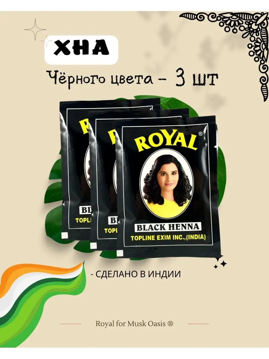 Natural cosmetics will reveal the true secret of the East. Rich black, dark brown, brown, and burgundy hair colors are a woman's true adornment. ROYAL Henna will provide you with an intense shade of hair, eyebrows, and eyelashes. Henna completely covers gray hair, evens out hair structure, strengthens from root to tip, stimulates hair growth, prevents breakage and split ends, and imparts a charming glossy shine and smoothness. Henna provides a beautiful, natural shade. Thanks to Eastern cosmetics, you will have thick and healthy hair. With regular use, your hair will become stronger and more elastic. The natural complex nourishes the scalp like a natural cream, preventing itching and dandruff. Henna provides long-lasting, even color. Considering that henna can dry out hair, add 0.5 to 1 teaspoon of cosmetic oil to the mixture. It will help you make your hair elastic and shiny. With respect and care, the Musk Oasis team.