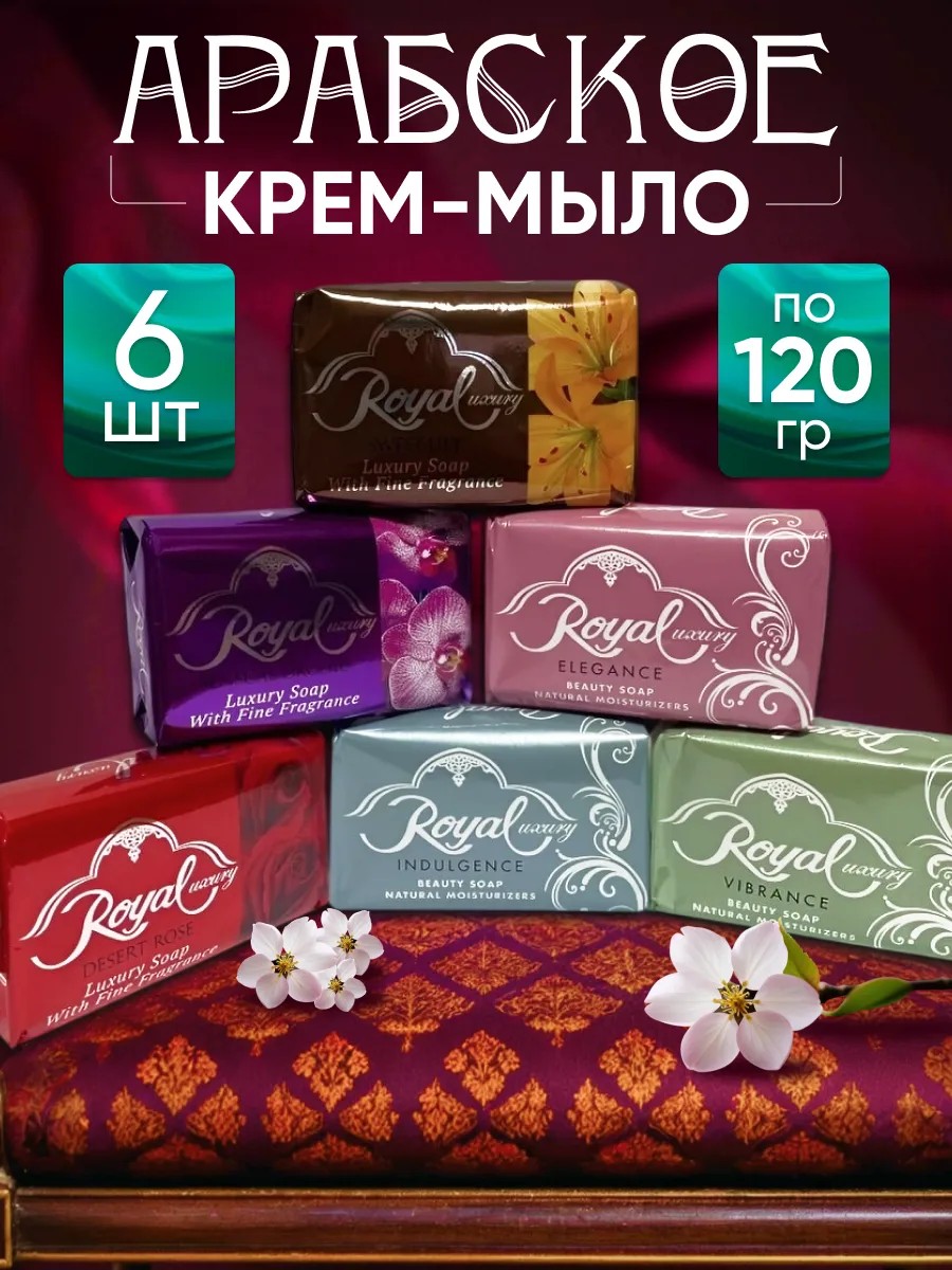 Туалетное мыло Royal из ОАЭ без содержания животных жиров на основе растительных масел и глицерина превосходно очищает и увлажняет кожу рук и тела и является альтернативой жидкому мылу. Косметическое мыло обладает стойкой пеной и нежным приятным ароматом, подойдет для всех типов кожи, включая чувствительную кожу. Арабское детское мыло отлично подходит для частого применения, после него кожа становится мягкой и ухоженной, оно не вызывает аллергии. В состав мыла Royal входит глицерин, способствующий удержанию влаги на поверхности кожи, тем самым обеспечивая восстановление гидробаланса, молочный крем, насыщающий питательными веществами и обеспечивающий комфорт после умывания. Ненавязчивая ароматическая композиция не раздражает и не надоест при длительном использовании. Мыло роял твердое кусковое с ароматом розы, лилии, орхидеи- каждый запах подарит вам удовольствие при его использовании. Крем - мыло не вызывает сухости и стянутости кожи.