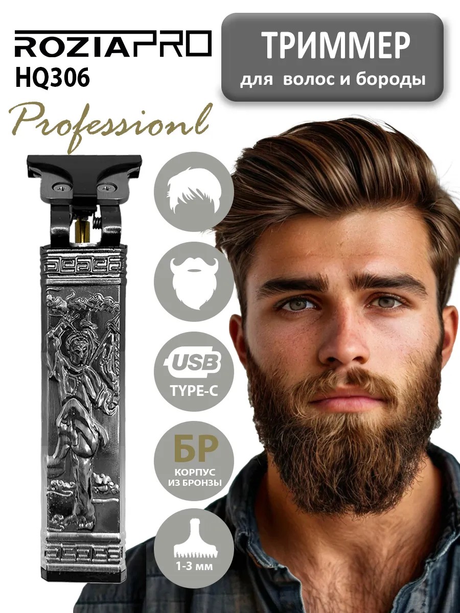 Компактные размеры и легкий вес триммера позволят легко брать его с собой в дорогу. Машинка для бороды и усов Rozia Pro HQ-306 выполнена в стильном текстурированном серебристом корпусе с изысканным узором и вставками. Она очень удобно лежит в руке благодаря своей эргономичной форме. Независимо от того, являетесь ли вы профессиональным парикмахером или просто хотите поддерживать свою прическу и бороду в порядке дома, триммер для стрижки волос и бороды станет идеальным инструментом в вашей коллекции.