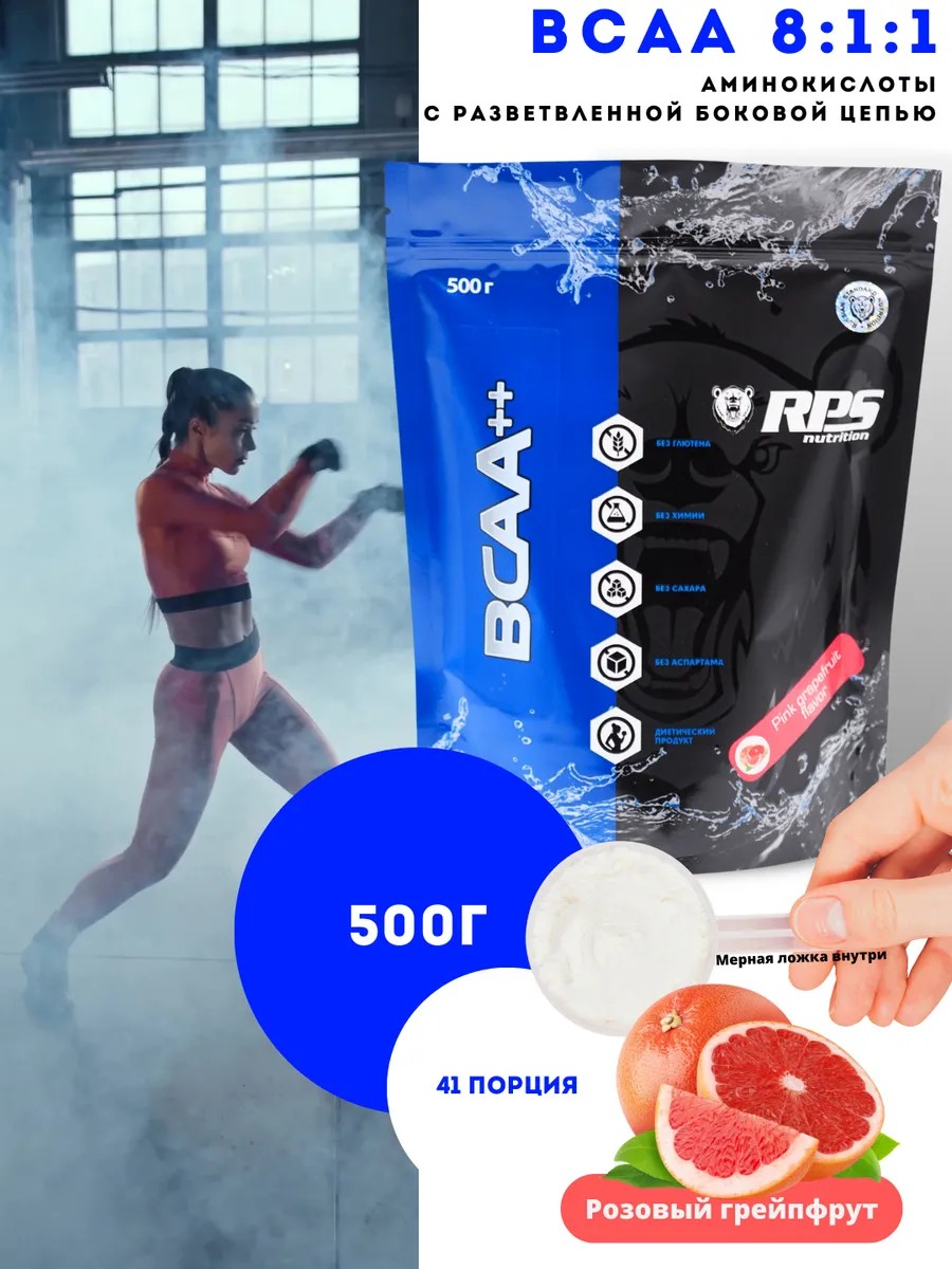 To synthesize tissue, our body requires building blocks – amino acids. You can take pure amino acids for specific purposes. Or you can take them in combination – a universal solution is a BCAA amino acid blend, which stands for Branch Chain Amino Acids. The benefits of RPS Nutrition BCAAs: They contain no carbohydrates – no sugar, no glucose, no fructose, no maltodextrin – no carbohydrates at all. Therefore, they are suitable for everyone and for any purpose – from athletes in pre-competition preparation to ordinary people on any fat-burning diet – with no quantity limits. They are not diluted with anything. RPS Nutrition BCAAs are pure BCAAs without any cheapening additives! They contain 3 amino acids (leucine, isoleucine, and valine) in an 8:1:1 ratio. Leucine is the most expensive of these three amino acids and, at the same time, the most important for muscle growth and recovery, so our ratio is highly effective for rapid recovery after heavy, prolonged, or frequent training. The fourth amino acid in the product, glutamine, is responsible for accelerating muscle metabolism and slowing down catabolic processes after intense training. Numerous studies confirm that glutamine promotes faster recovery after intense physical and mental stress and boosts immunity.