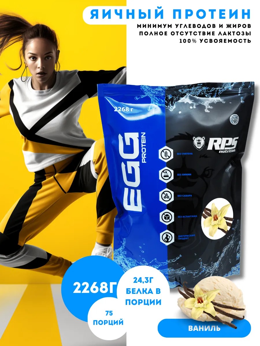 Яичный протеин RPS Nutrition - Egg Protein RPS Nutrition - представляет собой чистый яичный белок - альбумин - который, по сути, является изолятом - чистым, изолированным яичным белком без каких-либо остаточных углеводов и жиров в составе. Альбумин - это эталонный белок, абсолютно полноценный по аминокислотному составу, в котором представлены все незаменимые аминокислоты в оптимальном для человека соотношении. Его аминокислотный СКОР равен 100%. Является самым диетичным и при этом абсолютно полноценным протеином, аналога которому попросту нет, поэтому может использоваться в период низкокалорийных диет с высоким содержанием белка как основной источник белка. Не вызывает никаких нарушений белкового обмена и заболеваний ЖКТ при правильном применении. Яичный протеин отлично растворим в воде с образованием обильной пены, быстро, легко и полностью переваривается, и всасывается в кишечнике, не вызывает никаких неприятных явлений в ЖКТ (вздутия, газообразования, тяжести и т. д.), т.к. в его составе нет даже остаточных количеств молочного сахара (лактозы) и остаточного количества жиров, обладает достаточно текучей, не густой и не вязкой, консистенцией. В любом из представленных вкусов протеин будет иметь небольшой вкусовой оттенок яйца, что абсолютно нормально и свидетельствует о его натуральном составе. Вкус Egg Protein RPS Nutrition будет идеальным, если вы разведете его на чистой воде, а не на молоке. При разведении нашего продукта на молоке, кефире, йогурте просим вас сначала внимательно оценить степень их свежести и годности. В летний период года настоятельно рекомендуем разводить Egg Protein на воде или молоке. При ежедневных или интенсивных тренировках, а также при тяжёлой физической работе, рекомендуется совместный приём с ВСАА+ RPS Nutrition для ускорения восстановления нервной и мышечной ткани - 1-2 порции ВСАА развести в воде и пить прямо во время тренировки. Противопоказан только при индивидуальной непереносимости и при выраженной пищевой аллергии на яичный белок. ОБЛАСТЬ ПРИМЕНЕНИЯ: В качестве дополнительного источника белка.