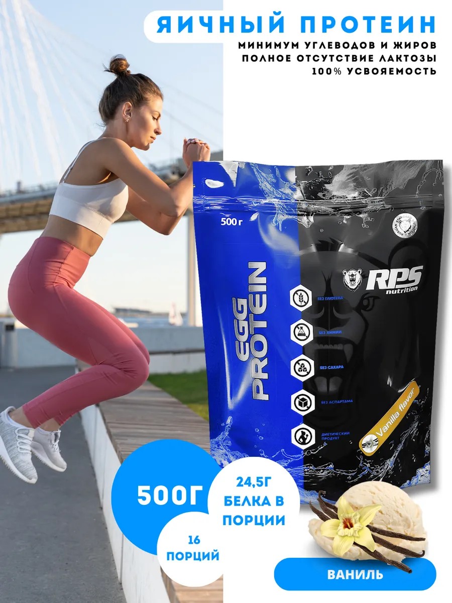 Яичный протеин RPS Nutrition - Egg Protein RPS Nutrition - представляет собой чистый яичный белок - альбумин - который, по сути, является изолятом - чистым, изолированным яичным белком без каких-либо остаточных углеводов и жиров в составе. Альбумин - это эталонный белок, абсолютно полноценный по аминокислотному составу, в котором представлены все незаменимые аминокислоты в оптимальном для человека соотношении. Его аминокислотный СКОР равен 100%. Является самым диетичным и при этом абсолютно полноценным протеином, аналога которому попросту нет, поэтому может использоваться в период низкокалорийных диет с высоким содержанием белка как основной источник белка. Не вызывает никаких нарушений белкового обмена и заболеваний ЖКТ при правильном применении. Яичный протеин отлично растворим в воде с образованием обильной пены, быстро, легко и полностью переваривается, и всасывается в кишечнике, не вызывает никаких неприятных явлений в ЖКТ (вздутия, газообразования, тяжести и т. д.), т.к. в его составе нет даже остаточных количеств молочного сахара (лактозы) и остаточного количества жиров, обладает достаточно текучей, не густой и не вязкой, консистенцией. В любом из представленных вкусов протеин будет иметь небольшой вкусовой оттенок яйца, что абсолютно нормально и свидетельствует о его натуральном составе. Вкус Egg Protein RPS Nutrition будет идеальным, если вы разведете его на чистой воде, а не на молоке. При разведении нашего продукта на молоке, кефире, йогурте просим вас сначала внимательно оценить степень их свежести и годности. В летний период года настоятельно рекомендуем разводить Egg Protein на воде или молоке. При ежедневных или интенсивных тренировках, а также при тяжёлой физической работе, рекомендуется совместный приём с ВСАА+ RPS Nutrition для ускорения восстановления нервной и мышечной ткани - 1-2 порции ВСАА развести в воде и пить прямо во время тренировки. Противопоказан только при индивидуальной непереносимости и при выраженной пищевой аллергии на яичный белок. ОБЛАСТЬ ПРИМЕНЕНИЯ: В качестве дополнительного источника белка.