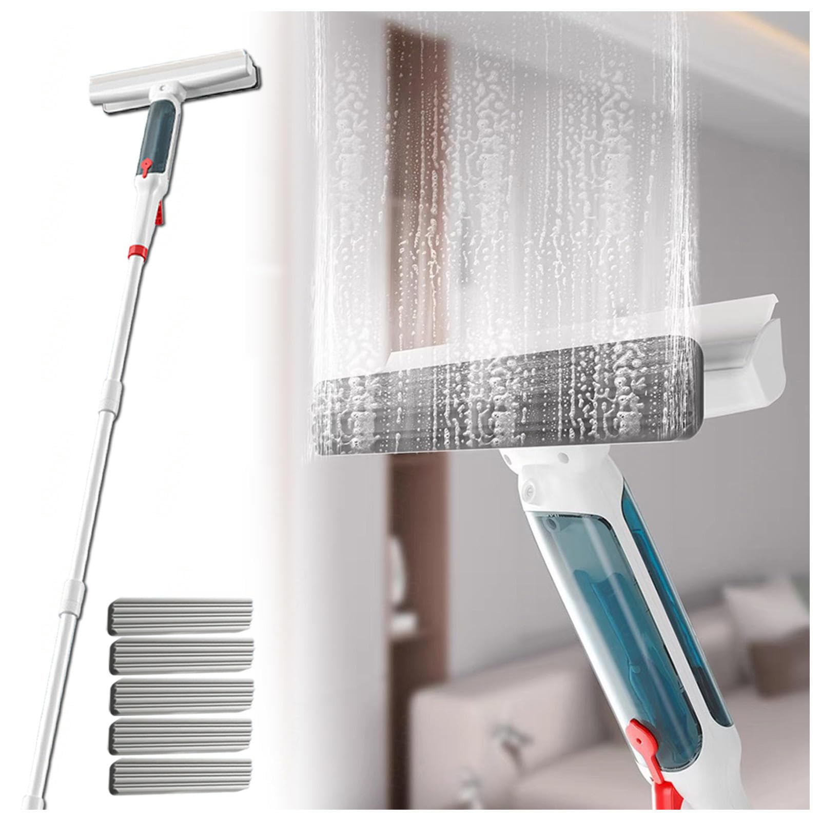 Our always focuses on household cleaning products, aiming to discover and create simpler and more practical products, making our cleaning work easier and more efficient.Cleaning is a daily task that we need to do.A convenient tool can help you get twice the result with half the effort. Besides windows,window cleaning squeegee kit is versatile and suitable for mirrors, glass doors, shower screens, and various other glass surfaces. Its design ensures a streak-free, spotless shine across different areas of your home. Specification Name:Window Squeegee for Home Material: Abs Plastic soft Silicone aluminum Pole Gross Weight: 600g Size: 24 190cm 9.5 75in Package: 1 squeegee for Window Cleaning 5 Scrubber Pads Warm tip: The window squeegee can be easily assembled by yourself. If you encounter any quality problems, please contact us by email, we will try our best to help you. (before the window squeegee left factory, each window squeegee has been tested for water spraying. So it is normal that there is water left).Extension pole:This window cleaning kit includes a extension pole that extends up to 75'' 190cm.Window cleaner tool for high windows enables easy cleaning of high or hard-to-reach windows without requiring a ladder or step stool. Reusable and durable:The window washing kit is made of premium silicone materials.The 5 pcs sponge pads can be cleaned in the washing machine as needed and reused again and again. Upgrade design:This squeegee for window cleaning features a spray cleaning function and separate tanks for clean water and sewage.The waste water tank can collect about 60 of the waste water.It without soiling the ground,saving effort and worry. Water spraying device:The window squeegee comes with a water bottle for water or cleaning solution.Pressing the wrench can evenly spray.The fine nozzle sprays out a mist of water that is even and fine and covers a wide area. 4 in 1 design:The window squeegee for home with squeegee on one side and scrubber on the other makes window cleaning faster and streak-free. 500ml Spray and sewage collector provides a more efficient way to clean.