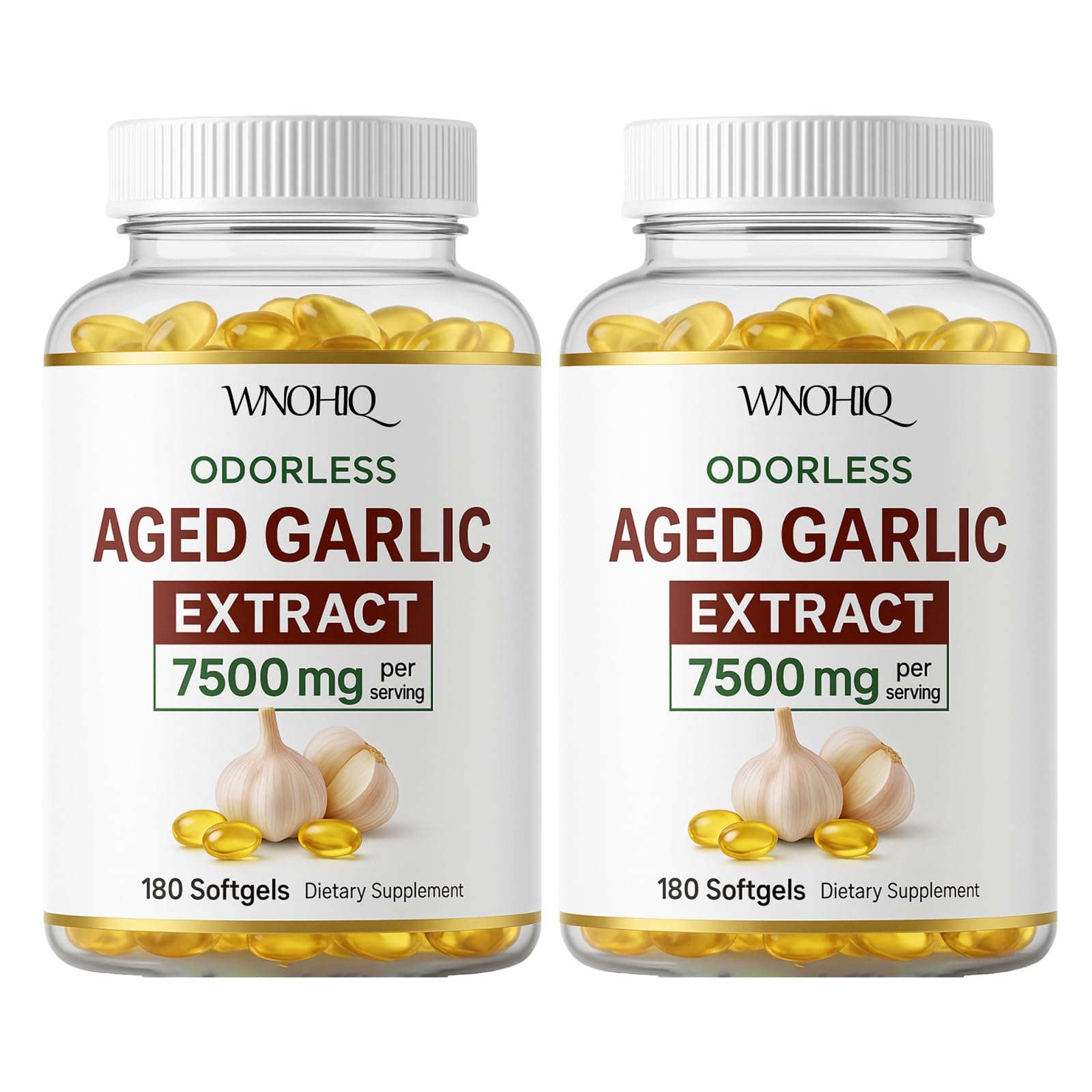 Convenient 360 Softgels Supply: Easy-to-swallow softgels offer a 3 to 6-month supply depending on your dosage, providing long-term value and consistent health benefits. Organic, Non-GMO Gluten-Free: Made with clean ingredients to meet the highest quality standards, suitable for health-conscious individuals with dietary restrictions. Supports Immune Heart Health: Aged garlic extract is widely used to help support immune function and health as part of a balanced lifestyle. Odorless Garlic Pills for Daily Use: Specially processed to remove the strong garlic odor, making it easy to take daily without the aftertaste or discomfort of raw garlic. High Potency Aged Garlic Extract: Each serving delivers 7500mg of odorless aged garlic extract, formulated to provide maximum support for overall wellness and vitality. Natural Softgel Clumping – Normal in Bottle Packaging: Our aged garlic Softgels are packed in convenient resealable bottles. Because they contain pure, natural plant oil and are free from artificial anti-caking agents, softgels may occasionally stick together or appear slightly firm during shipping or in warm conditions. This is a normal and harmless physical reaction that does not affect quality or effectiveness. Simply gently separate the softgels by pressing the bottle or store it in a cool, dry place to restore their original texture.