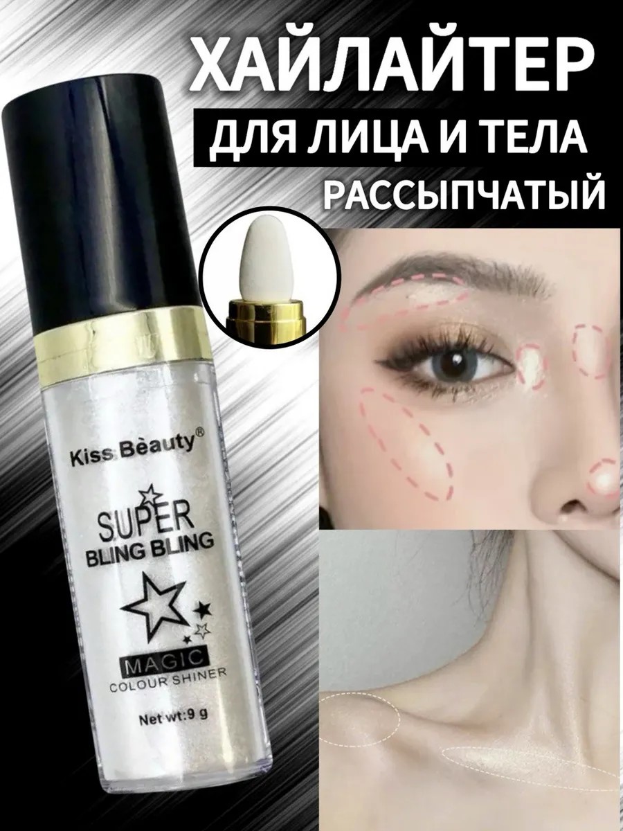 Хайлайтер для лица сухой с блестками от бреда Kiss Beauty, который специализируется на производстве высококачественной косметики для макияжа женщин. Хайлайтер - это один из самых популярных продуктов в декоративной косметике для лица. Рассыпчатый хайлайтер в стике используется для создания эффекта сияющей кожи, подчеркивания выступающих частей лица и придания ему здорового и свежего вида, дополнительного сияния коже и волосам. Мягкая насыщенная сияющими частицами текстура хайлайтера равномерно ложится на кожу, создавая нежный перелив без эффекта зернистости. Пудра отлично растушевывается, позволяя добиться отдохнувшего, здорового цвета лица и обладает хорошей стойкостью. Хайлайтер в виде пудры поглощает излишки себума в течение дня, позволяя продукту держаться на коже, с неизменным отличным результатом. Благодаря своей легкой текстуре и превосходной стойкости, вы можете быть уверены, что наш хайлайтер продержится весь день без необходимости постоянно исправлять макияж. Пудра обладает эффектом ретуши, за счет чего визуально сглаживаются все неровности кожи, включая поверхностные признаки возраста и расширенные поры. Изготовлен по корейской технологии, отличное средство для контуринга. Подходит для всех видов кожи. Способ применения: Перед первым применение перевернуть стик с хайлайтером аппликатором вниз, встряхнуть несколько раз для того, чтобы пудра попала на губку аппликатора. Как только нужное количество пудры-хайлайтера попадет на губку аппликатора, можно начинать применение. Хайлайтер готов к использованию, когда губка аппликатора приобрела цвет хайлайтера. Хайлайтер имеет очень мелкий шиммер (мелкие светоотражающие частицы в таком хайлайтере почти незаметны глазу), что позволяет создать легкое равномерное свечение без эффекта зернистости. Можно использовать для лица, глаз, губ, тела и волос. Хайлайтер для контуринга лица, глаз, губ, волос и тела Мерцающий глиттер Блестки для лица и тела.