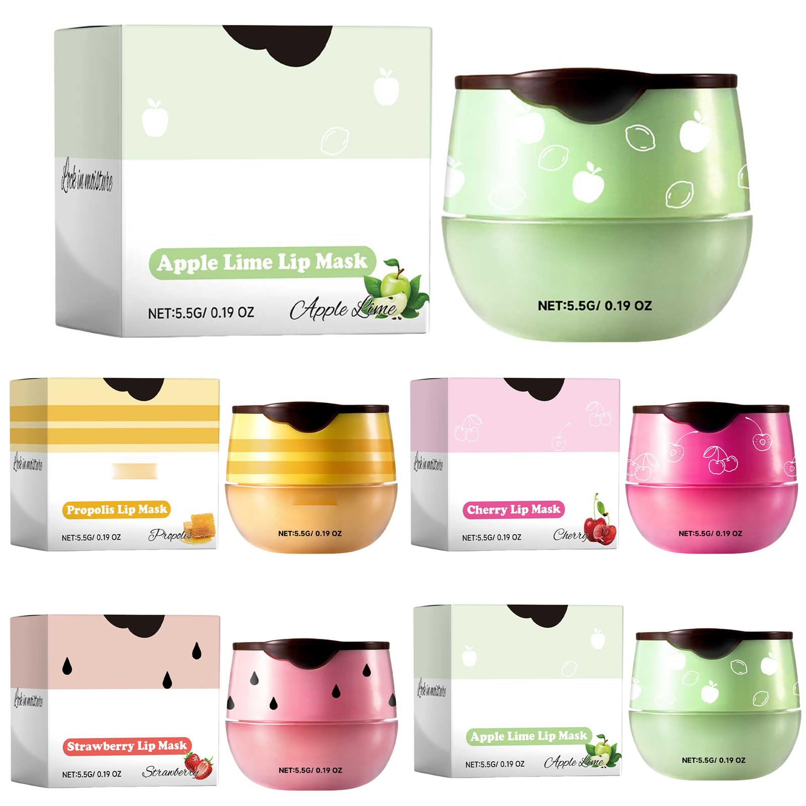 Net weight: 5 pieces SAFETY WARNING For heavy-duty use only. Avoid contact with eyes. Keep away from open flames and direct sources of ignition.Exquisite Design: The delicate honey pot design is perfect for anyone who loves a touch of whimsy. The thoughtful packaging includes a lip brush, which can be stored after applying the propolis lip mask. Multifunctional: The nourishing and moisturizing effect is suitable not only for daily lip care but also as a base for soft lip makeup. Optimal Lip Care: Applying a lip mask once a day is more effective than using a traditional lip balm. The extra time your lips spend on it allows for optimal absorption of the treatment. Absorbs Easily and Quickly: Moisturizing, yet not greasy. When applied gently, the lip mask absorbs quickly and completely. Once absorbed, it effectively protects the lips, prevents dryness, reduces lip lines, and intensely nourishes the lip skin. Lip Balm with 6 Fruit Flavors: Propolis extract and strawberry vitamin E moisturize, nourish, and add shine to the lips. Its silky texture, combined with the enticing scent of aloe, apple, cherry, peach, watermelon, and coconut, caresses your lips, leaving them feeling soft and smooth. For irresistibly beautiful lips.Lot de 5 baumes à lèvres Bee Balm, baume au miel pour soin des lèvres de jour et de nuit, prévient et exfolie les lèvres sèches et gercées, masque de sommeil à lèvres, réduction des lignes de lèvres 5.5G 5DESCRIPTION DU PRODUIT DESCRIPTION DU PRODUIT Poids net : 5 pièces AVERTISSEMENT DE SÉCURITÉ Pour un usage intensif uniquement. Éviter tout contact avec les yeux. Tenir à l'écart du feu ouvert et des sources directes.Design exquis : le design délicat de style pot à miel est parfait pour tous ceux qui aiment les rêveurs. L'emballage bien pensé peut contenir le pinceau à lèvres qui peut être conservé après l'application du masque à lèvres à la propolis. Multifonction : l'effet nourrissant et hydratant convient non seulement pour le soin quotidien des lèvres, mais aussi comme base pour un maquillage des lèvres souple. Soin des lèvres optimal : l'application d'un masque à lèvres une fois par jour est plus efficace que l'utilisation d'un baume à lèvres traditionnel. Le temps de repos des lèvres permet une absorption optimale des soins. Pénètre facilement et rapidement : hydratant, mais pas gras. Appliqué doucement, le masque à lèvres pénètre rapidement et complètement. Une fois absorbée, il protège efficacement les lèvres, prévient la sécheresse, réduit les rides des lèvres et nourrit intensément la peau des lèvres. Baume à lèvres avec 6 arômes de fruits : l'extrait de propolis et la vitamine E de fraise hydratent, nourrissent et donnent de la brillance aux lèvres. Sa texture soyeuse, combinée au parfum séduisant d'aloès, de pomme, de cerise, de pêche, de pastèque et de noix de coco, caresse vos lèvres et procure une sensation douce et douce. Pour des lèvres irrésistiblement belles.