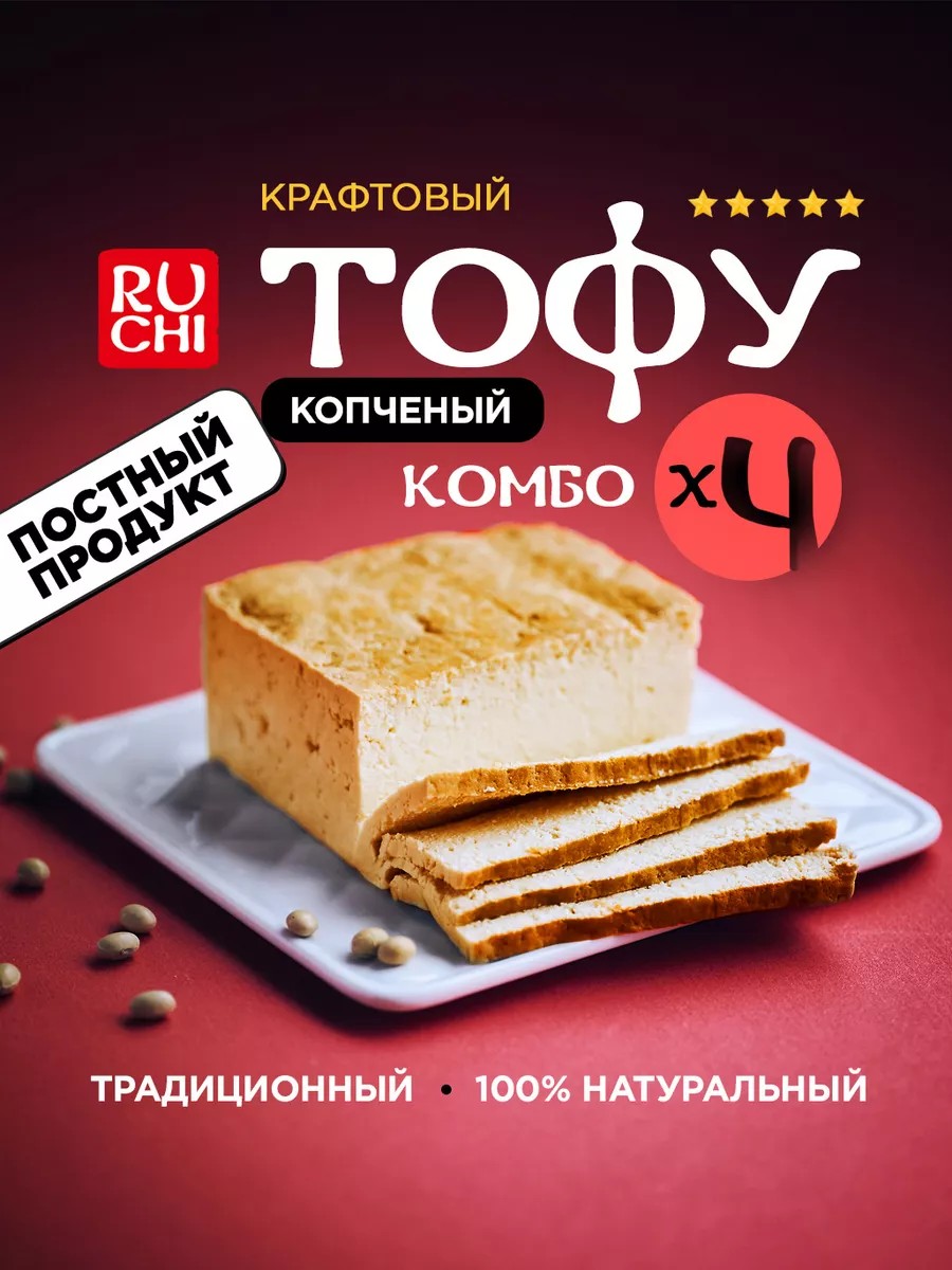 Соевый сыр тофу копченый 4 куска по 300 г - выгодное предложение.