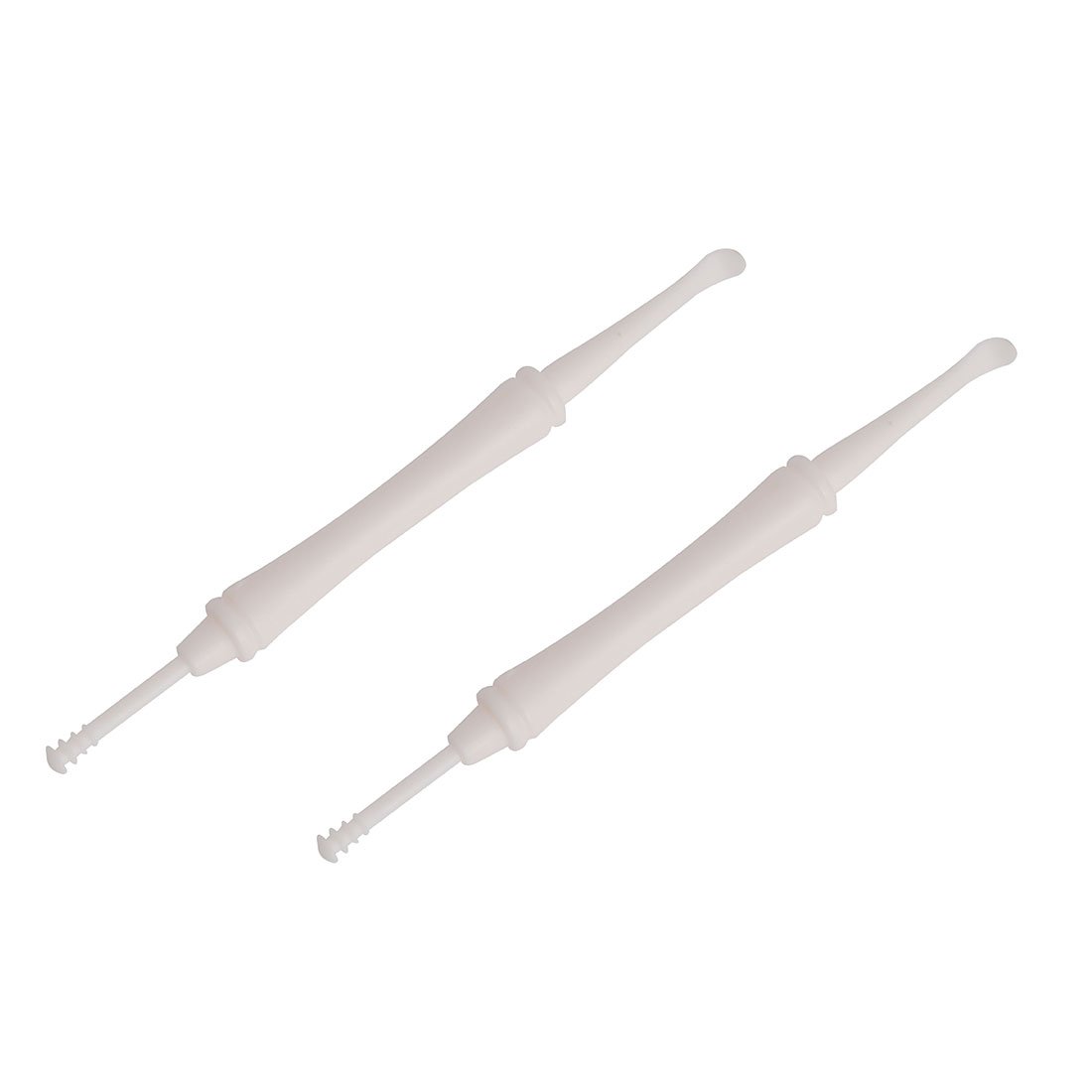 Plastic Ear Care Double Side Spiral Design Earpick Earwax Remover Curette Cleaner 2pcs Made by plastic, double side design, great tool for you to keep your ear clean. Easy to use and scrape dry, and compacted ear wax. Attention: Please use it with EXTRA CARE as it may have the potential to the ear drum while improper using.