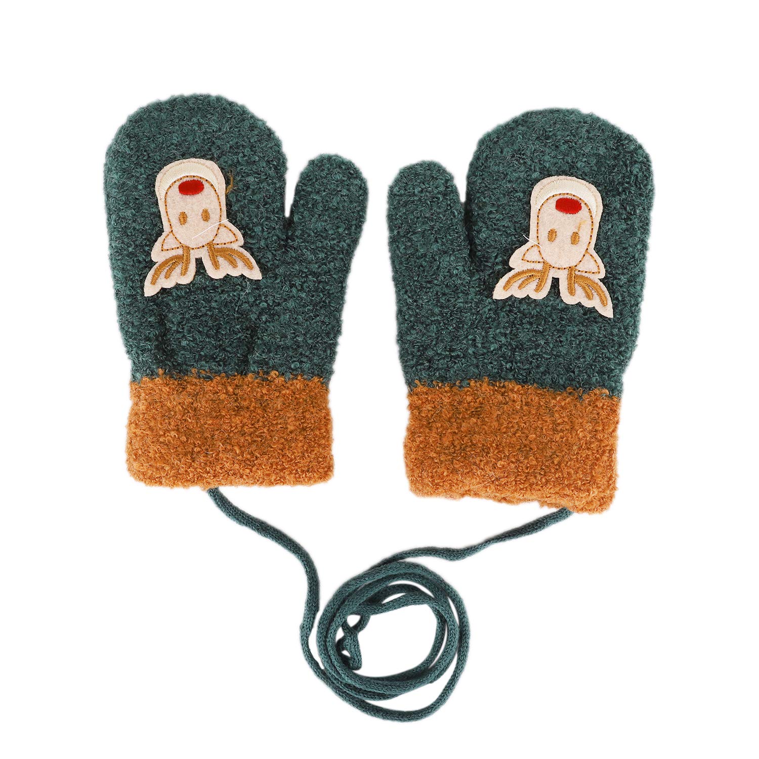 RUIXIA Kids Winter Knitted Gloves Cute Cartoon Bear Hang Neck Mittens Newborn Baby Warm Mitten Thicken Cashmere with Rope Mitten Thermal Full Finger Wrist Glove Boy Girl 0-3Y Gift Deep Green