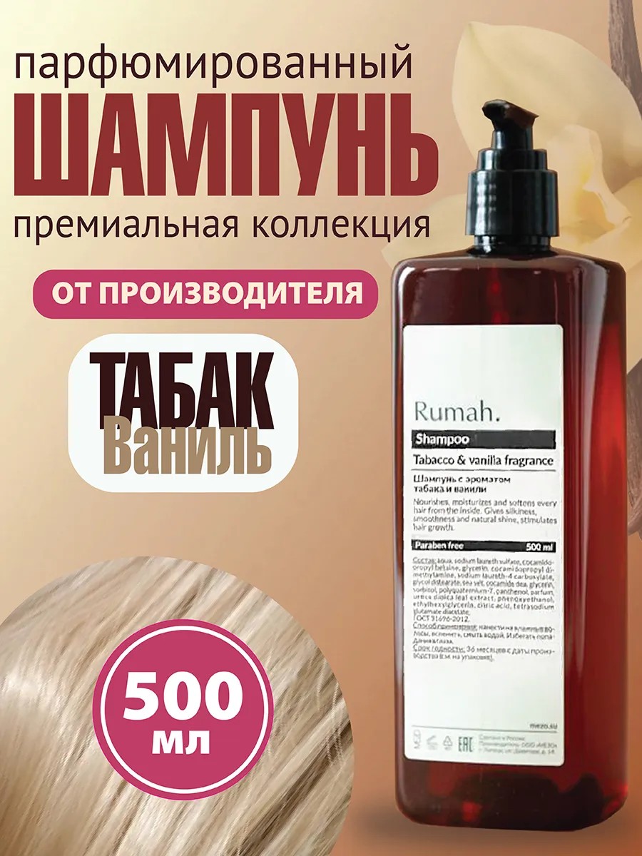 Шампунь парфюмированный Rumah с ароматом табака и ванили – это не просто средство для ухода за волосами, а настоящее удовольствие для чувств. Этот шампунь предназначен для очищения волос и кожи головы, а также для использования в бане, обеспечивая глубокое очищение и увлажнение. Состав, включающий пантенол, глицерин, парфюмированную воду, экстракт крапивы и морскую соль, делает его идеальным выбором для всех типов волос, особенно для ломких и нормальных. Аромат табака и ванили добавляет уникальный и приятный запах, создавая атмосферу ароматерапии при каждом использовании.