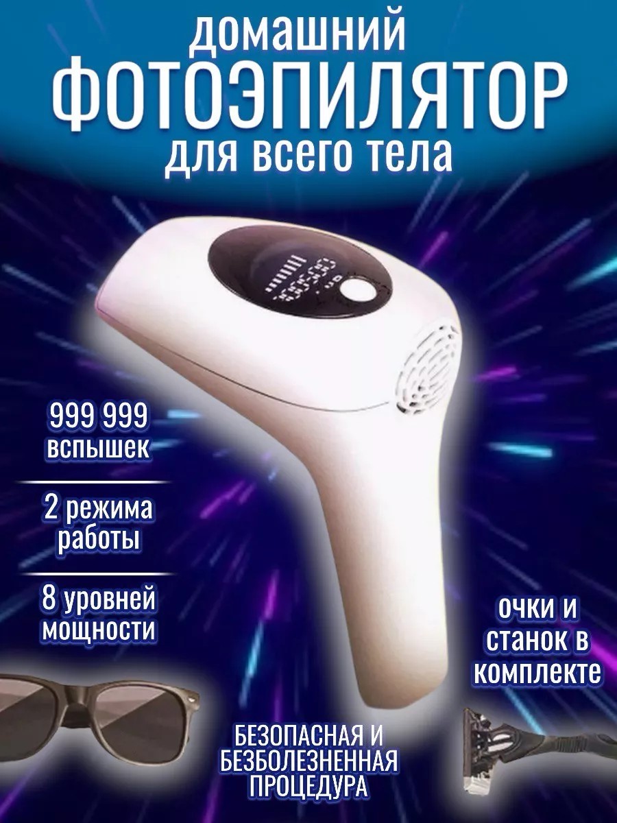 Фотоэпилятор представляет собой высокотехнологичный аппарат для удаления волос, который сочетает в себе преимущества лазера и фотоэпиляции, делает профессиональные результаты прямо у вас дома. С его помощью вы легко справитесь с нежелательными волосками на теле и лице, в том числе в зоне бикини, обеспечивая гладкость кожи без вросших волосков. После процедуры лазерной эпиляции нет покраснения. Прибор не вызывает раздражений, ожогов и не травмирует кожу благодаря защитному свойству. Использование эпилятора домашнего помогает делать кожу гладкой и шелковистой без использования бритвы. Он подходит как для женщин, так и для мужчин, благодаря своей универсальности и простоте в использовании. Лазерный станок для удаления волос имеет несколько режимов интенсивности, что позволяет настроить устройство в соответствии с вашими индивидуальными потребностями. Фотоэпилятор домашний, помогает уменьшить рост волос, они становятся тоньше и реже. Принцип его работы основан на импульсах света, которые оказывают воздействие на капилляры, прекращая питание луковицы. В результате волосы выпадают навсегда, и они перестают беспокоить вас. Аппарат подходит для различных зон, включая лицо и интимные зоны, такие как область бикини. Это косметологическое устройство прекрасно подойдёт тем, кто ценит своё время и предпочитает проводить сеансы по уходу за собой в комфорте собственного дома.