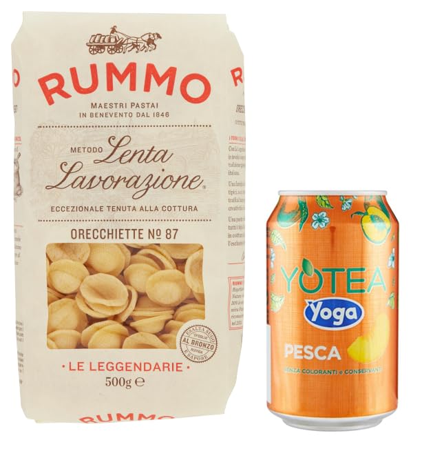 Rummo Pasta Orecchiette N 87 Lot de 12 pâtes italiennes à base de semoule de blé dur, 500 g 1 boîte de 330 ml pour le yoga Thé glacé à la pêche