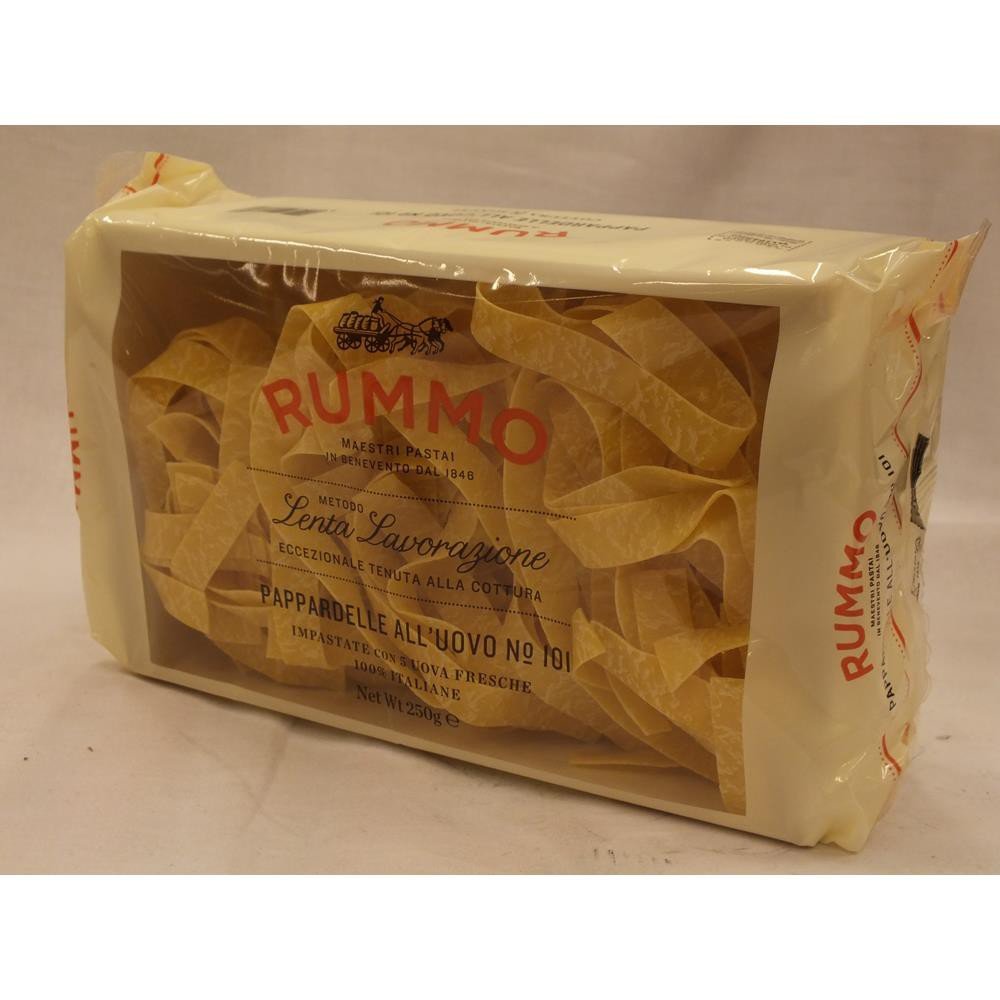 Rummo Lenta Lavorazione Pappardelle All'Uovo No. 101 250g Carton (Thick Egg Pasta) INGREDIENTS Durum wheat, semolina, eggs