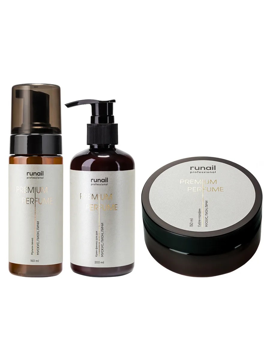 | Комплектация | очищающая мульти-пенка для маникюра и педикюра (мускус, пион, личи), 150 мл; парфюмированный суфле-парафин для рук и тела (мускус, пион, личи), 150 мл; парфюмированный крем-финиш для рук с мочевиной 10% (мускус, пион, личи), 200 мл |