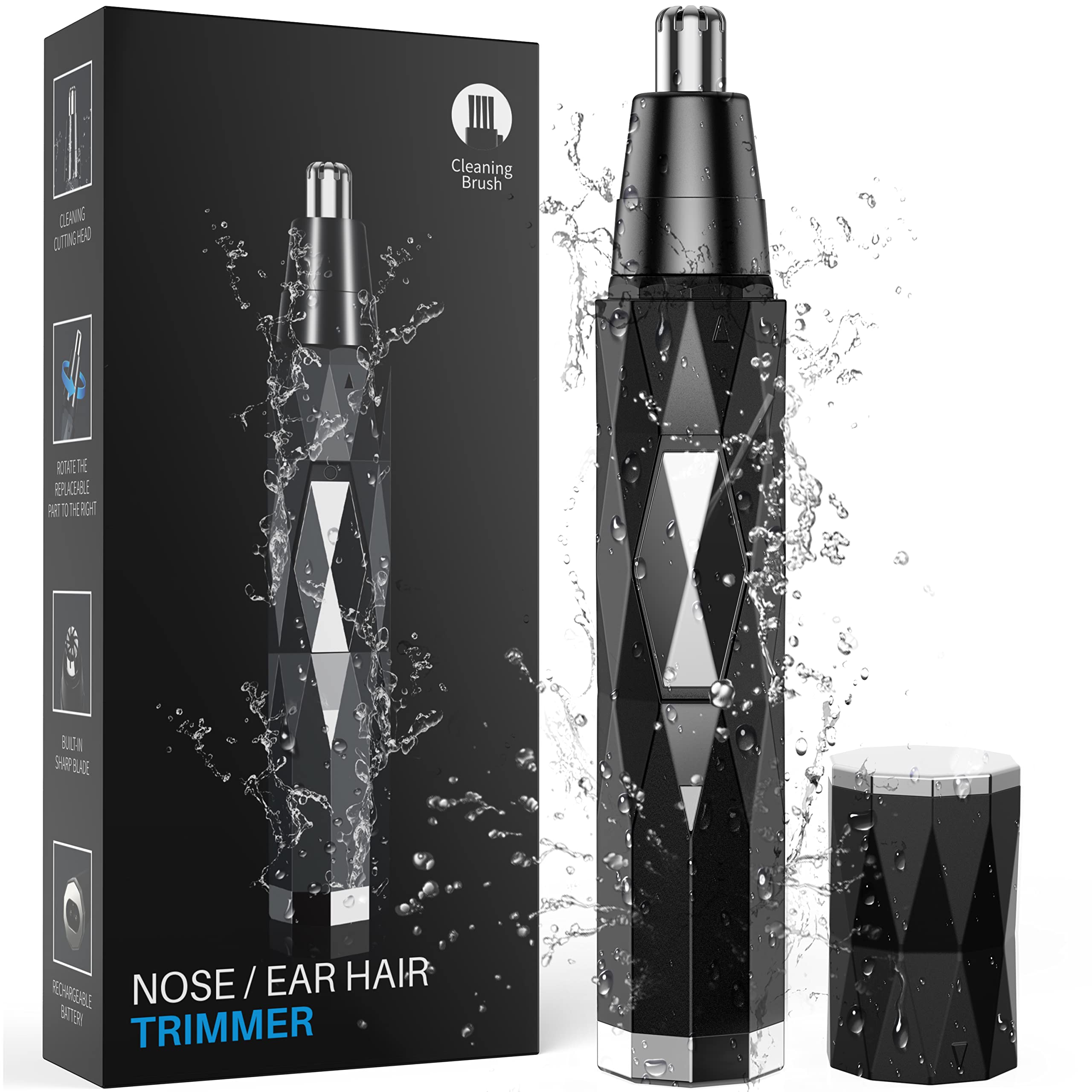 ? Compact and Light Weight: The vast majority of Trimmers on the market are either not sharp or not durable. Our nose hair trimmer enable everyone to use a good, sharp, durable, safe, and comfortable blade! Symptoms of shaving irritation are painful and can leave you feeling uncomfortable while draining your self-confidence. We’ve done our best to produce products in an environmentally-friendly and ethical way. We are engineered for years of use so you won’t want to throw them away. ? IPX7 Waterproof and Easy Cleansing: Ipx7 waterproof and washable, easily deal with residual by soak cleaning, even you take a shower. Washable and removable cutter head, you can twist and take off the blade for cleaning, convenient. User-friendly handy body. ? USB Rechargable: Say goodbye to AA batteries. Nose hair trimmer for men comes with rechargeable USB cable and built-in battery to make sure sufficient power at anytime anywhere, without buying more batteries. One-button design of this nose trimmer is easy to use and suitable for men and women. Make you show the most confident side anytime, anywhere. ? Spinning Blades System: This product features a dual-edge spinning blades system with protective cover, inner 360° rotating design to create the perfect edge and line, which precisely remove the hairs without painful and unpleasant pulling. Comfortable and easy to use. Let you show your best at work. Let you become a stylish man, anytime and anywhere. ? Multi-function Men's Nose/Ear Trimmer: men trimmer features a smart micro-vacuum system comfortably removes nose, ear and unwanted facial hair plus details beards and eyebrows with dual-edge. No more embarrassing moment during dates, at work or parties! You deserve to be the best of yourself - handsome, refined and stylish. Easily get rid of nose hair that pokes out painlessly, gently and quickly with nose hair trimmer, go out and bloom with confidence.