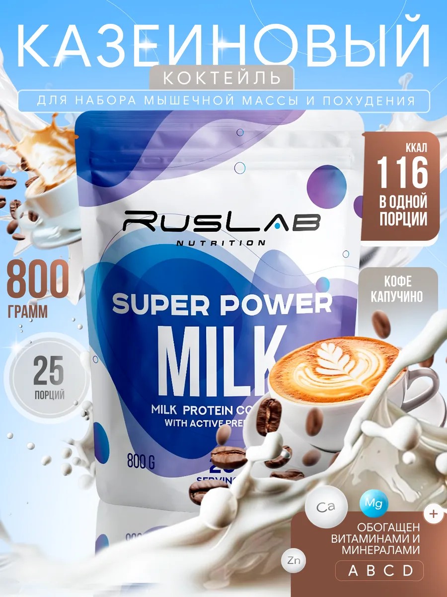 Протеин казеиновый SUPER POWER MILK (800 гр),капучино