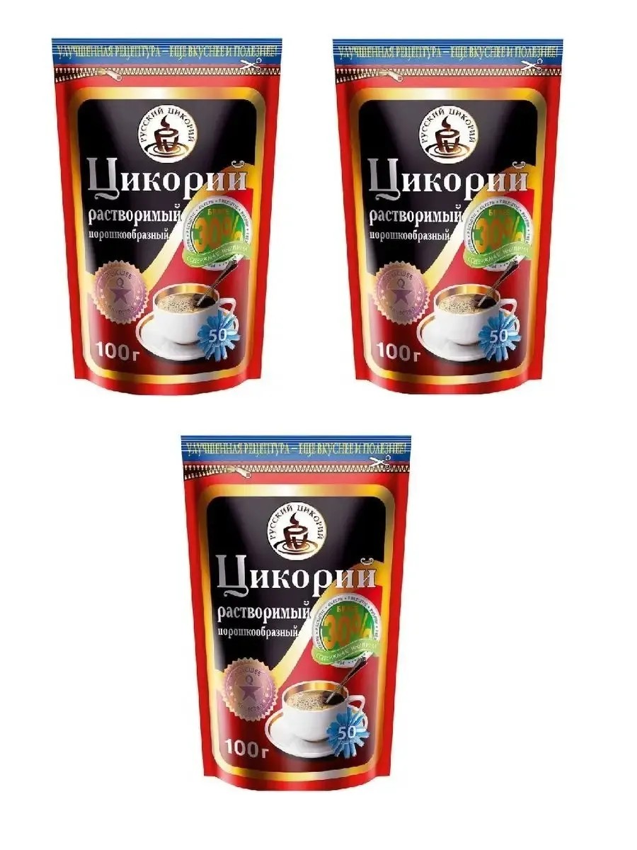 Set of 3 pieces. Total weight - 300 g. Russian Chicory Instant powdered chicory, doypack, 100 g. An instant drink that replaces coffee, as well as high-quality alcohol and fructose, is made from the roots of common chicory. Salad chicory is eaten raw, boiled, stewed, and baked. It is added to salads and vegetable stews; baked with eggs, cheese, apples, and in dough. Chicory imparts a pleasant aroma and an exquisite nutty-coffee flavor to baked goods. Chicory goes well with citrus fruits; pears; peaches; carrots; green peas; pickled and fresh cucumbers; onions; garlic, sweet peppers, omelets, and various sauces. Chicory "Russian Chicory" is the choice of people for whom a healthy lifestyle is not an empty phrase. It's made from 100% natural chicory root and contains a high amount of inulin (at least 35 percent). Its benefits are confirmed by SOEX testing conducted by the Russian Chamber of Commerce and Industry. The drink is caffeine-free, meaning it doesn't overload the nervous system or raise blood pressure. Furthermore, chicory has a beneficial effect on intestinal microflora, promoting the growth of bifidobacteria.