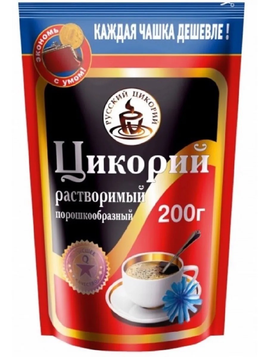 Русский цикорий Цикорий растворимый, 200 г. Цикорий растворимый с классическим вкусом послужит отличной заменой привычному кофе, при этом еще вкусным и полезным. Содержит в себе полезные компоненты, которые способствуют работе ЖКТ и всего организма в целом. Не отличается вкусом от кофе. Способ приготовления: 2-3 чайных ложки (в зависимости от вкусовых предпочтений) залить кипятком, добавить молоко по вкусу.