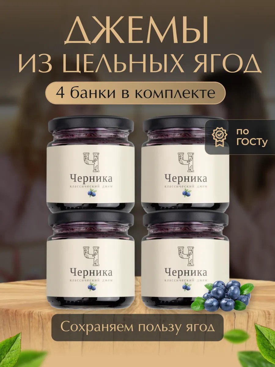 В производстве джемов используются ягоды клюквы, клубники, черники, брусники, выращенные в России.