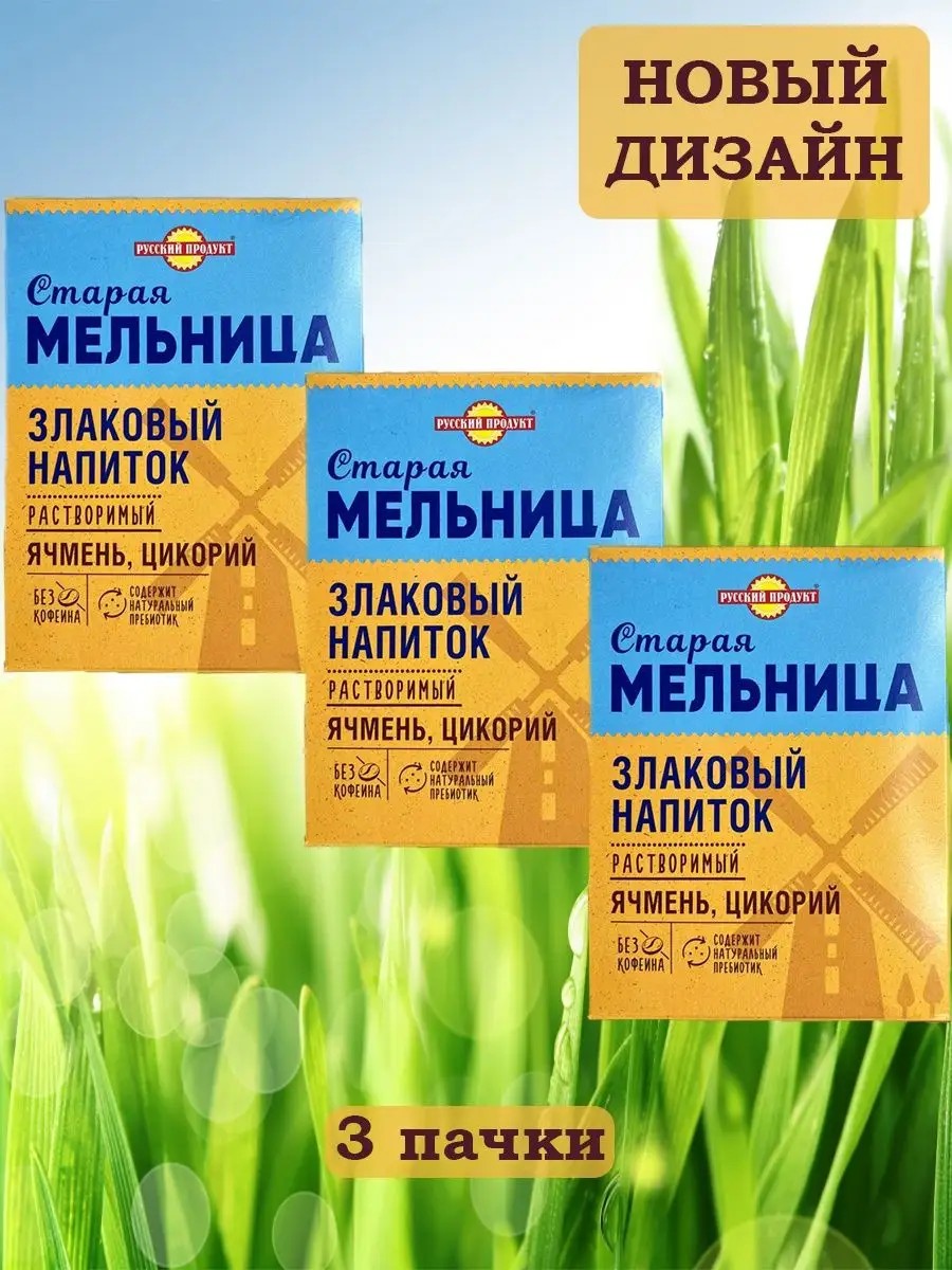 The cereal drink "Old Mill with Chicory" "Russian Product" is a vitamin-enriched product that will be an excellent choice for those who care about their health. Thanks to the unique combination of barley and chicory, this drink gives us a whole range of beneficial properties. Barley helps strengthen the immune system, lowers blood sugar levels and helps get rid of excess cholesterol.