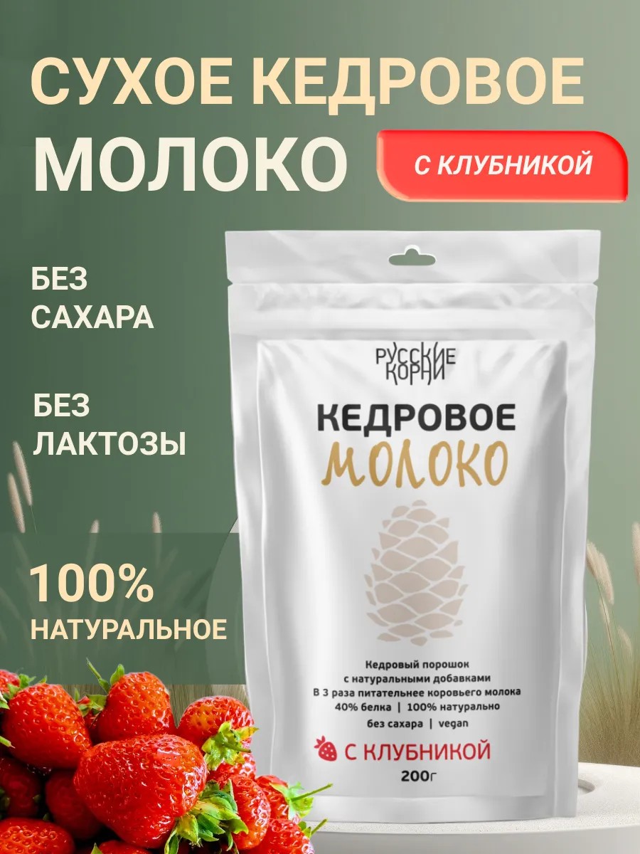 Кедровое молоко с клубникой - это настоящий кладезь пользы для вашего здоровья. Созданное с любовью и заботой о вашем здоровье, это молоко станет незаменимым компаньоном в вашем рационе. Сочетание кедрового ореха и клубники — идеальный пример того, как противоположности могут создавать нечто удивительное. Сочная, сладко-кислая клубника и кремовая нежность кедрового молока вместе создают вкус одновременно и утонченный, и насыщенный, оставляя после себя долгое, приятное послевкусие.Совершенно без сахара, оно станет идеальным выбором для тех, кто следит за своим питанием. Вегетарианцы и просто ценители качественных продуктов оценят его на вкус и на деле. Ведь кедровое молоко — это не только идеальный заменитель обычного молока в кофе, смузи, выпечке или коктейлях, но и настоящая "топливная станция" для мозга, сердца и сосудов. Для пищеварения — это настоящая находка. Легкоусвояемое и питательное, оно утоляет голод, подходит для перекуса и помогает в похудении. Содержащиеся в нем кальций, калий, магний, железо и йод делают его источником здоровья для костей, зубов и способствуют росту волос, а фолиевая кислота поддержит ваше эмоциональное равновесие. Это молоко — идеальный заменитель животного молока во многих рецептах. Добавьте его в кофе для нежного и насыщенного вкуса. Используйте в коктейлях, смузи или как основу для вкусного и здорового перекуса. А если вы увлекаетесь выпечкой, то наше кедровое молоко добавит нежности и аромата любимым десертам. Опробуйте уникальное кедровое молоко от "Русские корни" и позвольте себе наслаждаться натуральным и полезным продуктом каждый день!