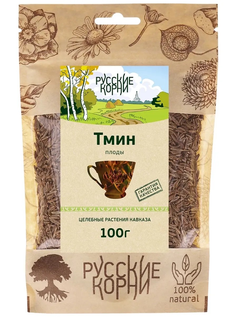 Русские корни Тмин плоды для пищеварения, для печени и почек 100 г