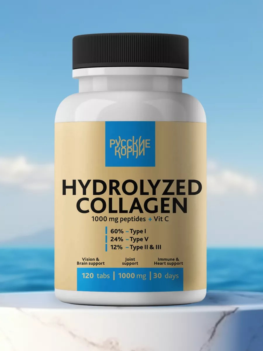 Коллаген — наиболее распространенный белок в организме. Это основной компонент кожи, костей, сухожилий, кровеносных сосудов и соединительной ткани. С возрастом под воздействием различных негативных факторов, таких как курение, высокое потребление сахара, процессов старения и ультрафиолетового излучения, производство коллагена снижается. При недостатке коллагена кожа теряет упругость, развиваются различные суставные заболевания. Для профилактики и улучшения функций поврежденных суставов применяются специальные препараты — хондопротекторы. Комплекс Коллаген+Витамин C — эффективное средство для поддержания здоровья опорно-двигательного аппарата, красоты и молодости кожи лица и тела. Гетерогенные смеси пептидов коллагена применяются в качестве биодобавок при остеоартрите и других дегенеративных заболеваниях суставов. Патологии вызывают боль, ограничение подвижности, могут привести к инвалидности. Hydrolyzed collagen — комплексный препарат. Биологические активные вещества препарата — различные типы коллагена, дополненные витамином C, способствуют восстановлению целостности хряща, укреплению связок, уменьшению боли и воспаления при патологиях суставов, улучшают состояние кожи. Применяется при профилактика остеопороза; перенесенные травмы суставов; коллагенозы; боль при дегенеративных заболеваниях; снижение подвижности суставов; повреждение суставно-связочного аппарата; возрастные изменения кожи и волос. Не является лекарственным средством. Перед применением проконсультируйтесь с врачом.