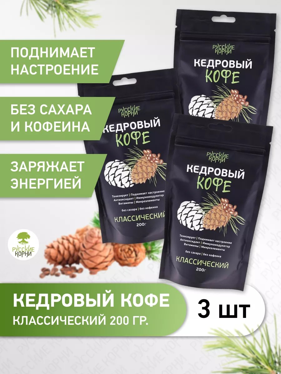 Русские корни Растворимый кофе кедровый без кофеина, без сахара, 3 шт