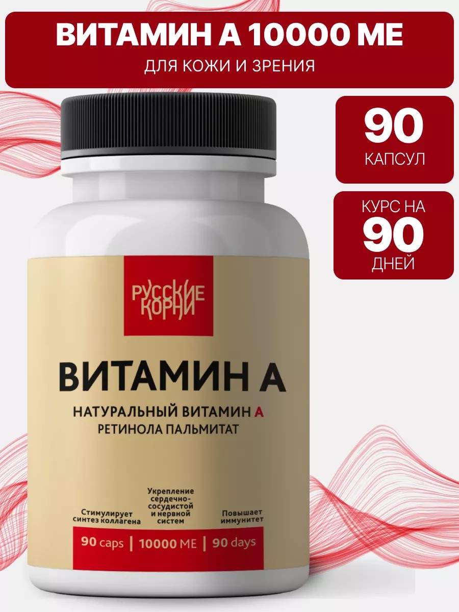 Русские корни Витамин А 10000 ME, Витамин Е ретинол для кожи и зрения
