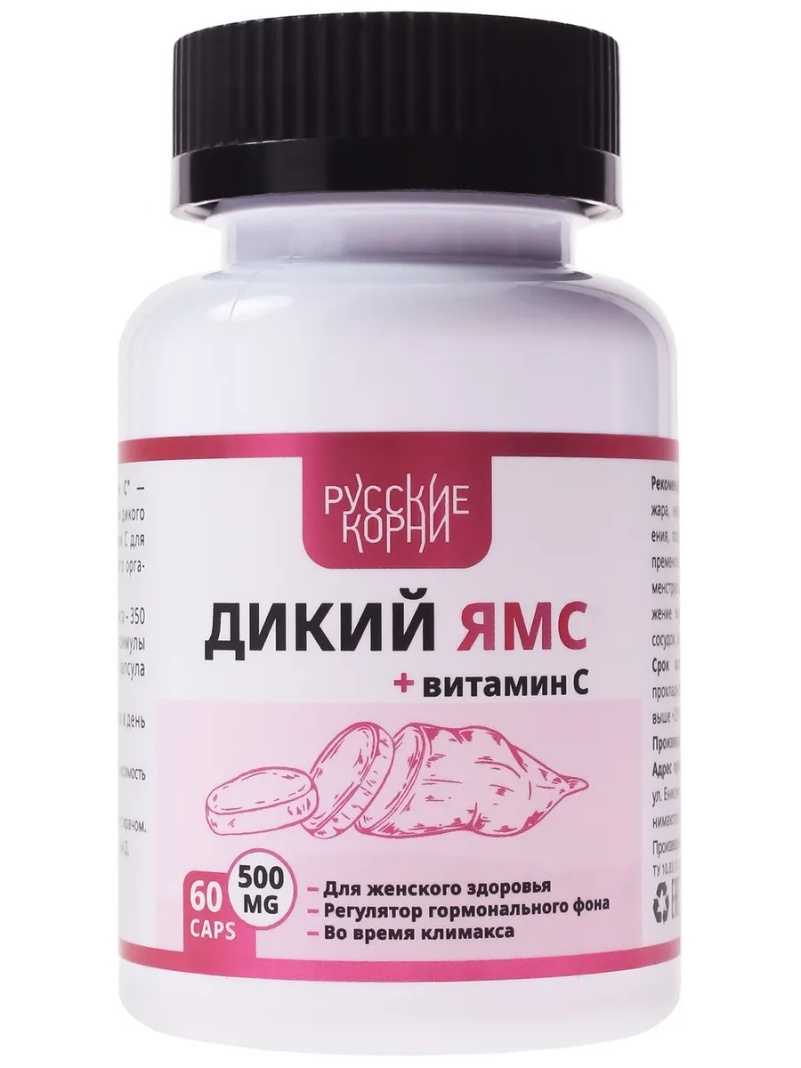 Русские корни Дикий Ямс для женщин + Витамин С 60 капсул