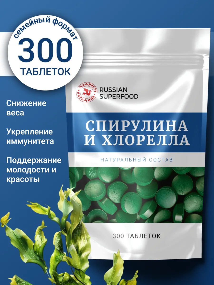 Russian superfood Спирулина и хлорелла для похудения 300 таблеток