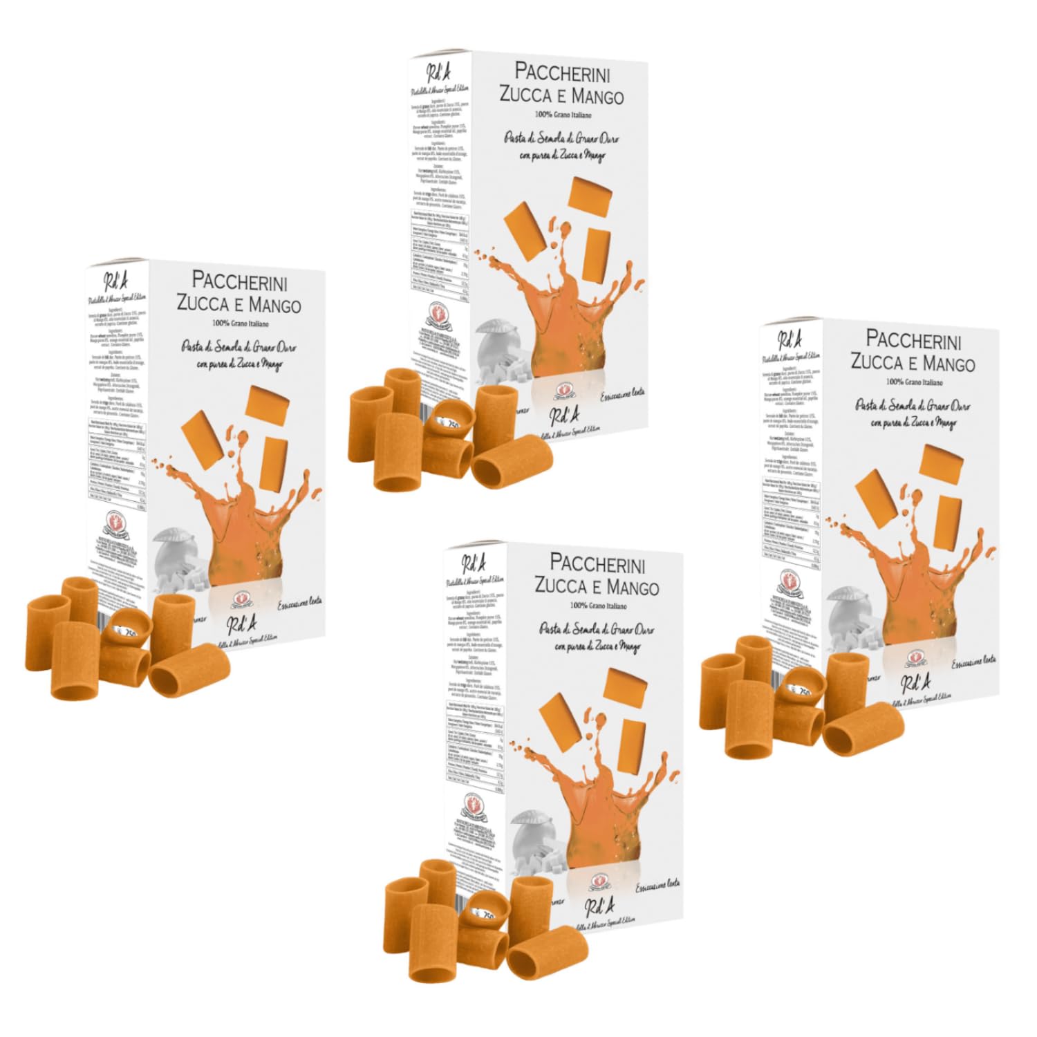 RUSTICHELLA D'ABRUZZO Since 1924, a story of pasta and family. For us, producing pasta is an age-old art, a legacy of the history and culture of our land. Proud to be Italian and to share Abruzzo pasta with the world, Rustichella d'Abruzzo is constantly committed to research, process monitoring, and quality control. Rustichella d'Abruzzo is at the forefront of pasta development and food formulas that meet consumer needs. "Paccherini Zucca e Mango": short pasta, durum wheat semolina paccherini with pumpkin and mango puree (4 x 250 grams). Made in Italy. [INNOVATION] - Rustichella d'Abruzzo is at the forefront of pasta development and food formulas that meet consumer needs. The company has an in-house laboratory, allowing it to develop various innovative activities and optimize the production process. [PRODUCTION] - The production facilities are the lifeblood of the company. Here, the Sergiacomo recipe endures, maintaining the same quality and passion as in 1924. Craftsmanship at the service of technology, a recipe dictated by tradition. [THE SEMOLINA] - Between artisanal and industrial pasta, a gap exists and is noticeable on the palate. Rustichella d'Abruzzo uses only the finest selected durum wheat semolina, with a high gluten content, kneaded with pure mountain water to give the pasta a unique flavor and texture. [THE PROCESSING] - The precious bronze dies make the pasta rough enough to absorb any type of sauce. Drying takes place slowly and at low temperatures, up to 50 hours and at approximately 35 40 degrees Celsius. [THE STORY] - The story of Rustichella d'Abruzzo, now a renowned artisanal pasta factory in over 70 countries worldwide, began in Penne. Gaetano Sergiacomo decided to create a pasta factory bearing his name, and for his pasta, he wanted a grain that spoke Abruzzese! INGREDIENTS Durum wheat semolina, pumpkin puree 15 , mango puree 8 , orange essential oil, paprika extract. Contains gluten.Rustichella d'Abruzzo Paccherini au potiron et à la mangue Pâtes de blé dur au potiron et à la mangue - 4 x 250 g Pâtes courtes artisanalesDESCRIPTION DU PRODUIT DESCRIPTION DU PRODUIT RUSTICHELLA D'ABRUZZO Depuis 1924, une histoire de pâtes et de famille. Pour nous, produire des pâtes est un art ancestral, un héritage de l'histoire et de la culture de notre terre. Fiers d'être italiens et de faire connaître les pâtes des Abruzzes au monde entier, Rustichella d'Abruzzo est constamment engagée dans la recherche, le suivi des processus et le contrôle qualité. Rustichella d'Abruzzo est à la pointe du développement de pâtes et de formules alimentaires répondant aux besoins des consommateurs. "Paccherini Zucca e Mango": pâtes courtes, paccherini de semoule de blé dur avec purée de potiron et mangue (4 x 250 grammes). Fabriqué en Italie. [INNOVATION] - Rustichella d'Abruzzo est à la pointe du développement de pâtes et de formules alimentaires répondant aux besoins des consommateurs. L'entreprise dispose d'un laboratoire interne, ce qui lui permet de développer diverses activités d'innovation et d'optimiser le processus de production. [PRODUCTION] - Les sites de production sont les deux poumons de l'entreprise. Ici, la recette Sergiacomo perdure, conservant la même qualité et la même passion qu'en 1924. L'artisanat au service de la technologie, une recette dictée par la tradition. [LA SEMOULE] - Entre pâtes artisanales et pâtes industrielles, un fossé se creuse et se ressent en bouche. Rustichella d'Abruzzo utilise uniquement la meilleure semoule de blé dur sélectionné, à forte teneur en gluten, pétrie avec de l'eau pure de montagne pour conférer aux pâtes une saveur et une ténacité uniques. [LA TRANSFORMATION] - Les précieux moules en bronze rendent les pâtes suffisamment rugueuses pour capturer tout type de sauce. Le séchage s'effectue lentement et à basse température, jusqu'à 50 heures et à environ 35 40 degrés. [L'HISTOIRE] - C'est à Penne que naît l'histoire de Rustichella d'Abruzzo, aujourd'hui une fabrique de pâtes artisanales connue dans plus de 70 pays à travers le monde. Gaetano Sergiacomo, décide de créer une fabrique de pâtes qui porte son nom et pour ses pâtes il veut un grain qui parle Abruzzese! INGRÉDIENTS Semoule de blé dur, purée de potiron 15 , purée de mangue 8 , huile essentielle d'orange, extrait de paprika. Contient du gluten.