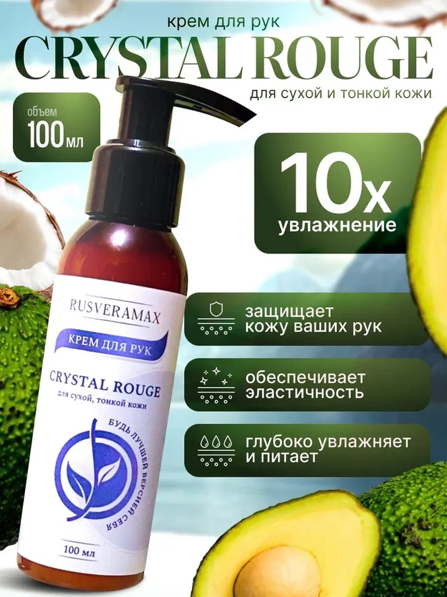 Rusveramax Крем для рук CRYSTAL ROUGE с маслом кокоса и авокадо