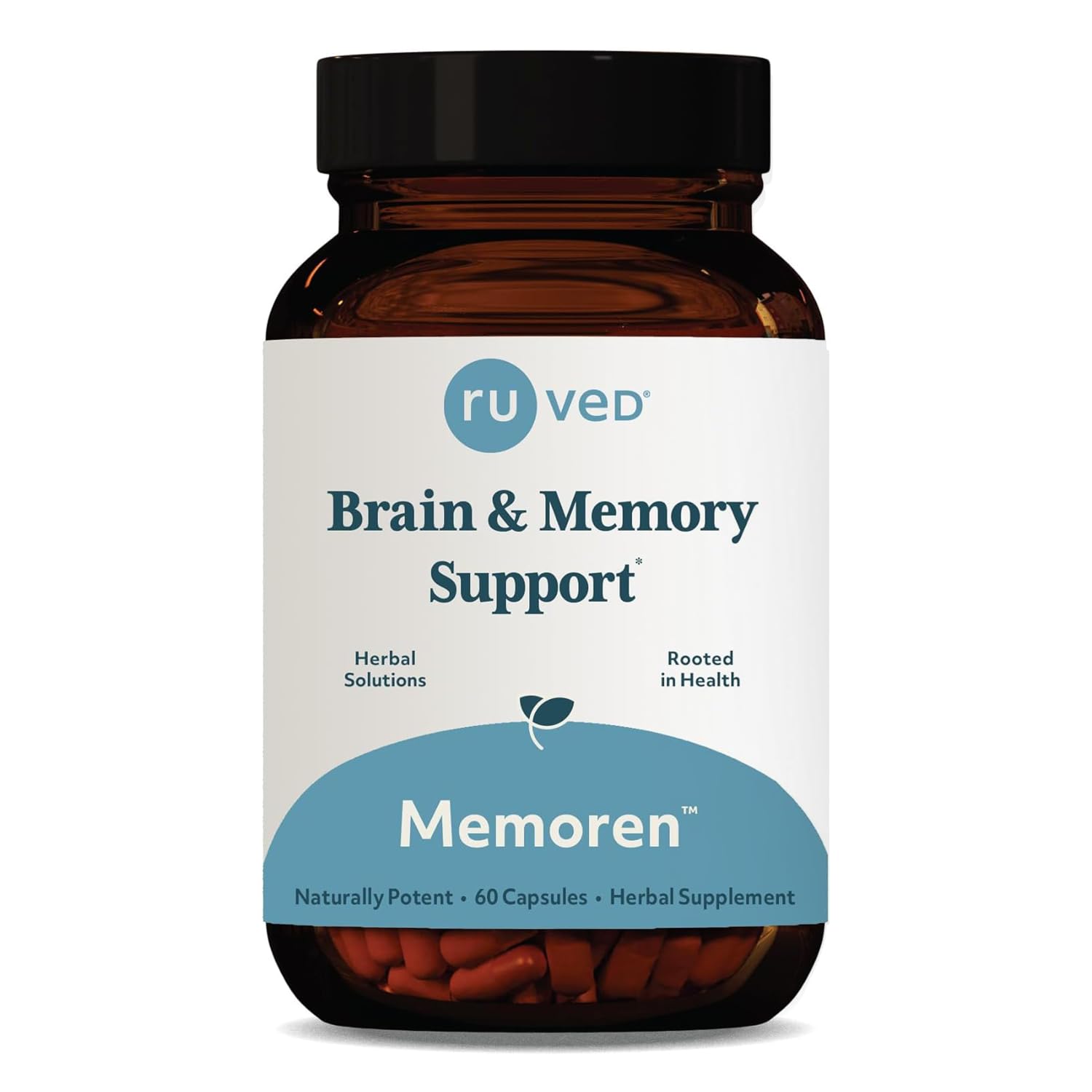 ruved Memoren - Bacopa Supplements Organic Bacopa Monnieri Gotu Kola Gingko & Ashwagandha for Memory & Focus Cognitive Support Pill for Adults - 60 Vegetarian Capsules (1 Count)