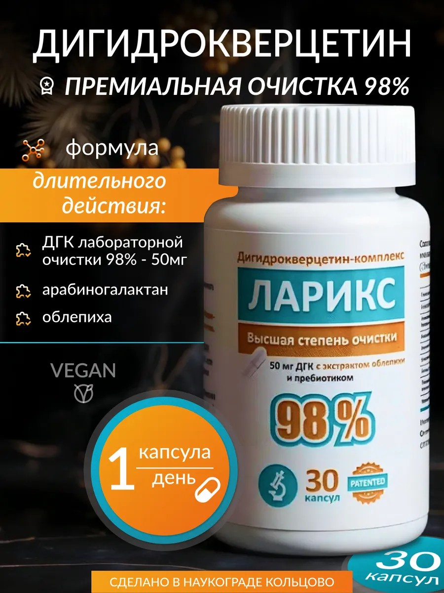 Дигидрокверцетин (чистота 98%, 100мг в двух капсулах) Ларикс – сила природы для вашего здоровья и красоты!