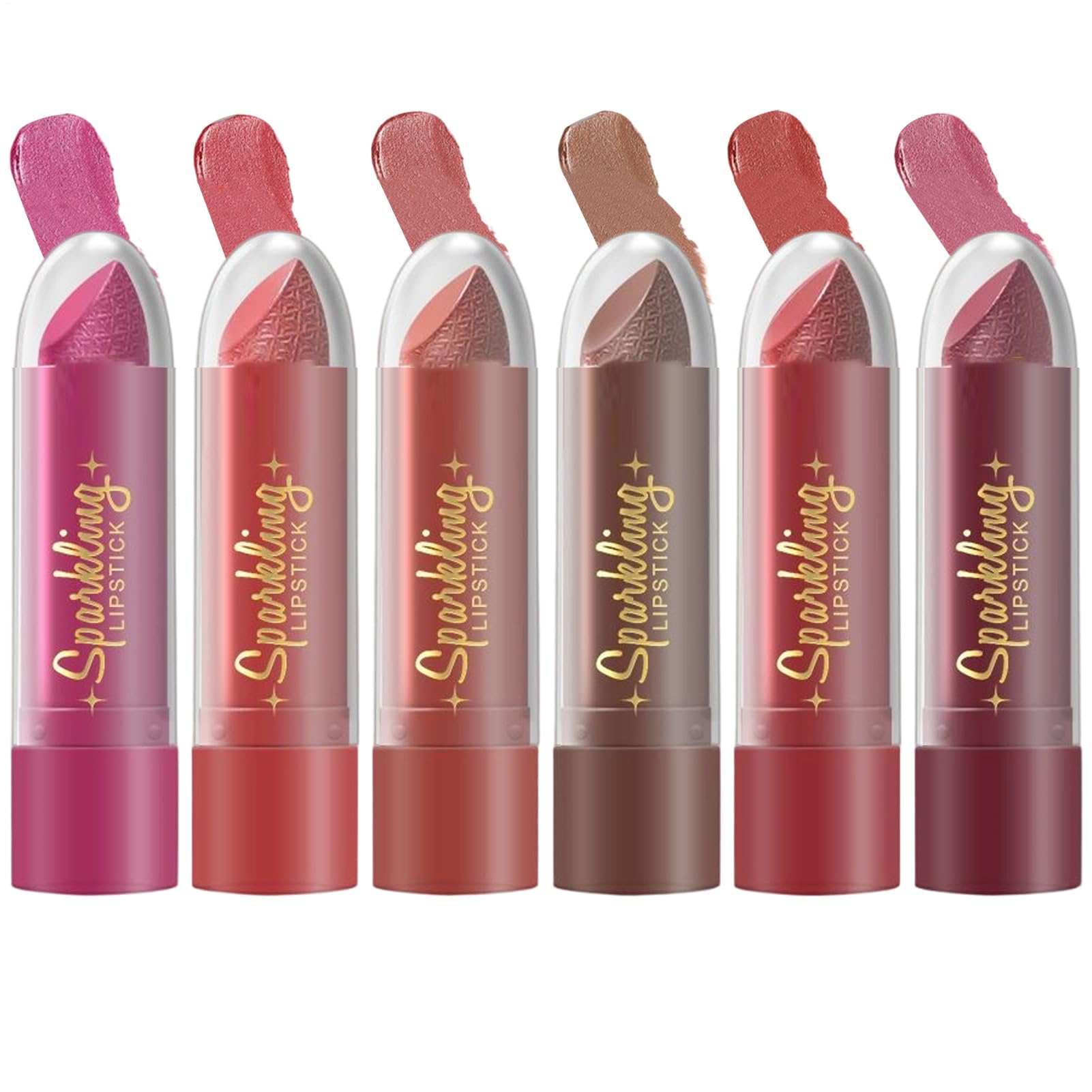 Ruwshuuk Iridescent Lipstick - Water-Resistant Lip Tint - Pack of 6 Moisturizing Travel Lipsticks Intense Color for Women