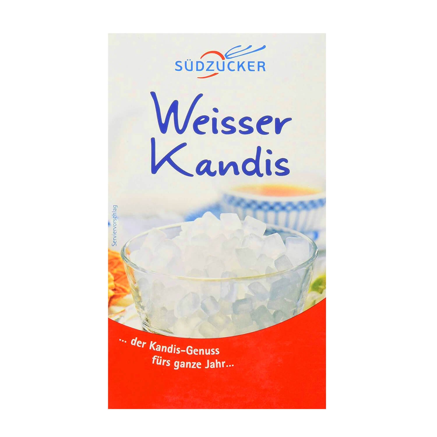South Sugar White Kandis Like the larger Broer Kluntje Kandis, the white Kandis is also produced by slowly crystallizing a highly concentrated sugar solution. The small sugar crystals connect to larger ones, candy sugar literally has "time to grow". The finished white diamond-like looking sugar crystals of the white Kandis are the ideal sugar for fine Darjeeling, Assam or Ceylon tees. But white Kandis is also often used to make homemade liqueur or the traditional "made" with grains and blackcurrants. Finally, white Kandis is also partly used in cooking as an alternative to coarse-grained canning sugar - a normal all-rounder among the Kandis types. Storage: Protect from moisture and heat.Südzucker Kandiensuiker wit, pak van 5 (5 x 500 g) Zuidsuiker witte Kandis Zoals de grotere Broer Kluntje Kandis, zo wordt ook de witte kandis geproduceerd door een sterk geconcentreerde suikeroplossing langzaam uit te scristalliseren. Daarbij verbinden de kleine suikerkristallen zich tot groter, kandiesuiker heeft woordelijk "tijd om te groeien". De afgewerkte witte diamantachtig uitziende suikerkristallen van de witte Kandis zijn de ideale suiker voor fijne darjeeling-, assam- of ceylontees. Maar ook voor het aanzetten van zelfgemaakte likeur of de traditionele "opgezet" met korrel en zwarte bessen wordt witte Kandis vaak gebruikt. Ten slotte wordt witte Kandis deels ook bij het inkoken als alternatief voor grofkorrelige inmaaksuiker gebruikt - een normaal multitalent onder de kandissoorten dus Opslag: beschermen tegen vocht en warmte.