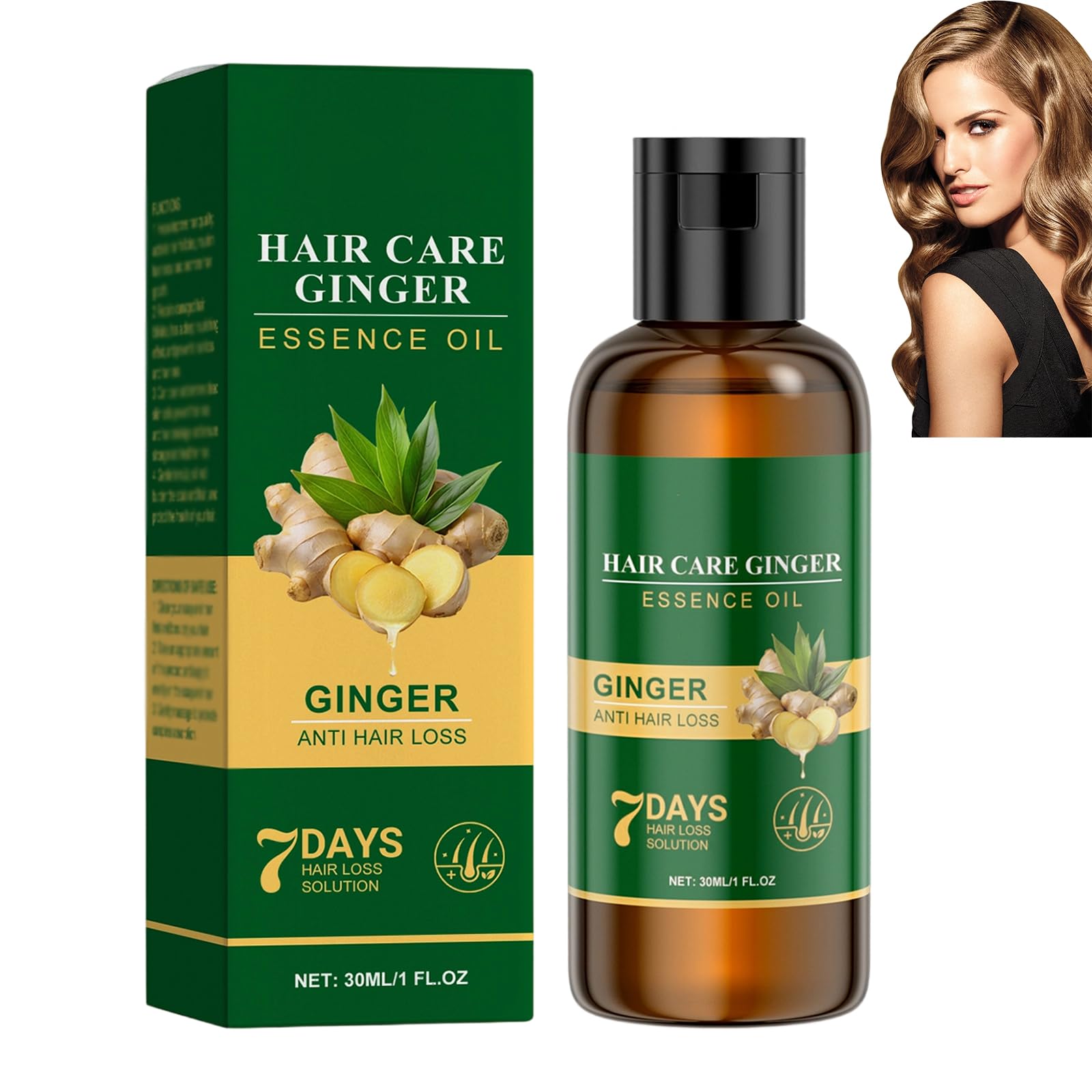 Sérum anti-chute de cheveux au gingembre 7 jours, solution nutritive pour cheveux au gingembre, favorise la croissance et répare les cheveux abîmés pour des cheveux plus forts et plus épais. (1pcs)