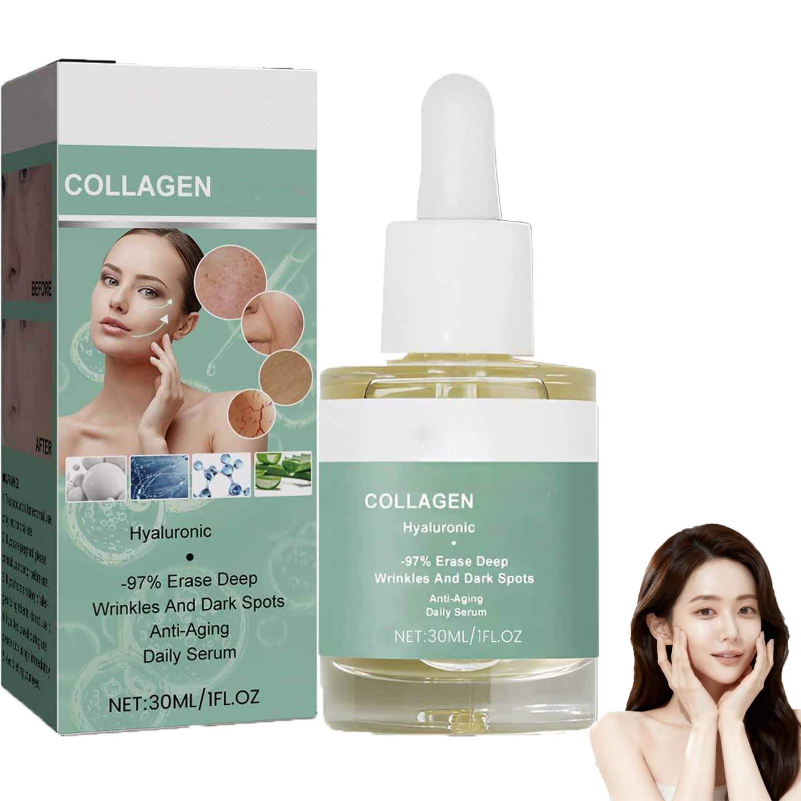 Sérum anti-âge au collagène avancé, sérum anti-âge, hydratant et nourrissant, contient de l'acide hyaluronique et de la vitamine C, raffermit la peau, améliore l'élasticité (1 pièce) 1 pièce.