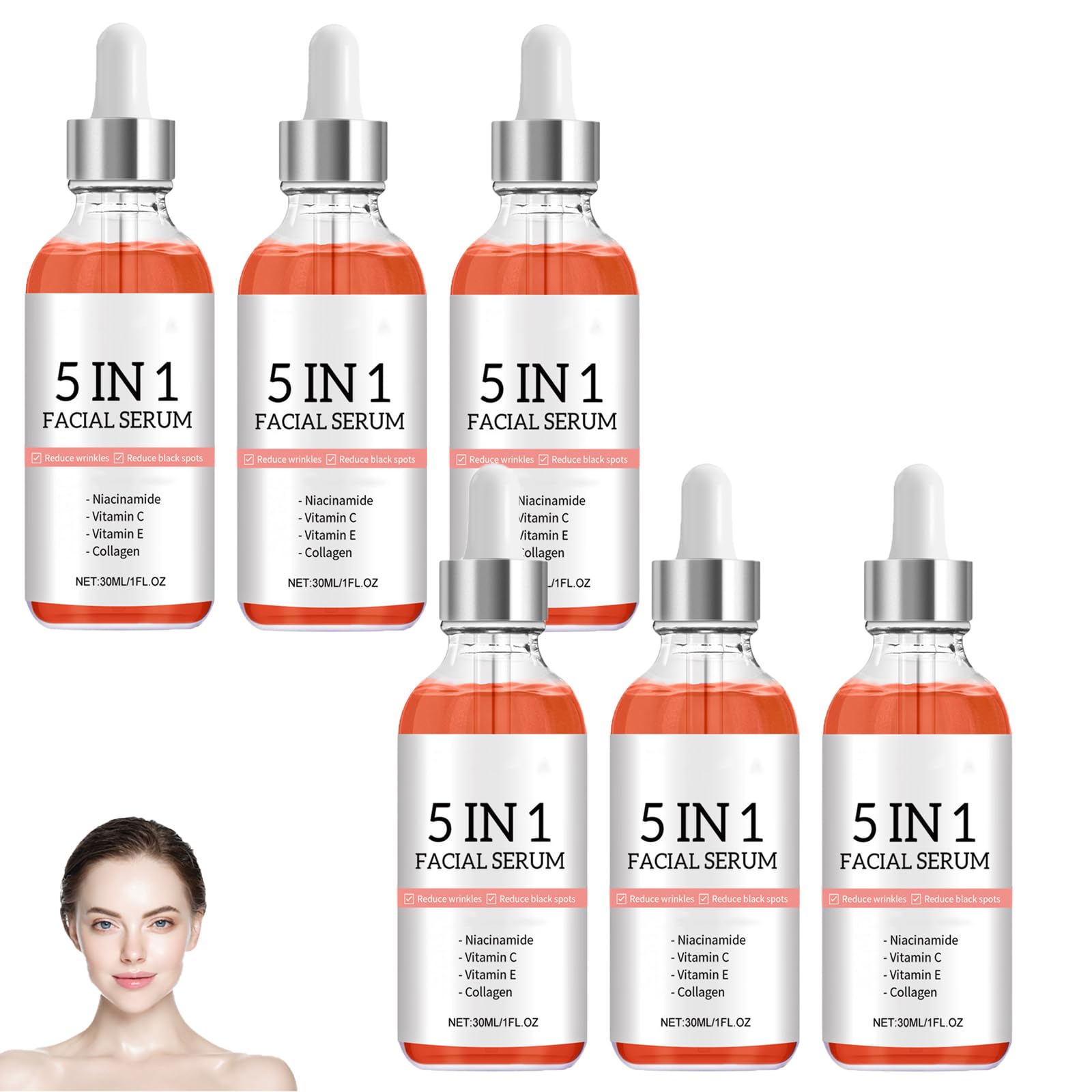 Sérum à la vitamine C, sérum raffermissant anti-rides 5 en 1 avec niacinamide, vitamine E et collagène, crème anti-âge, réduit les ridules, uniformise le teint, hydrate le visage et le corps (6pcs)