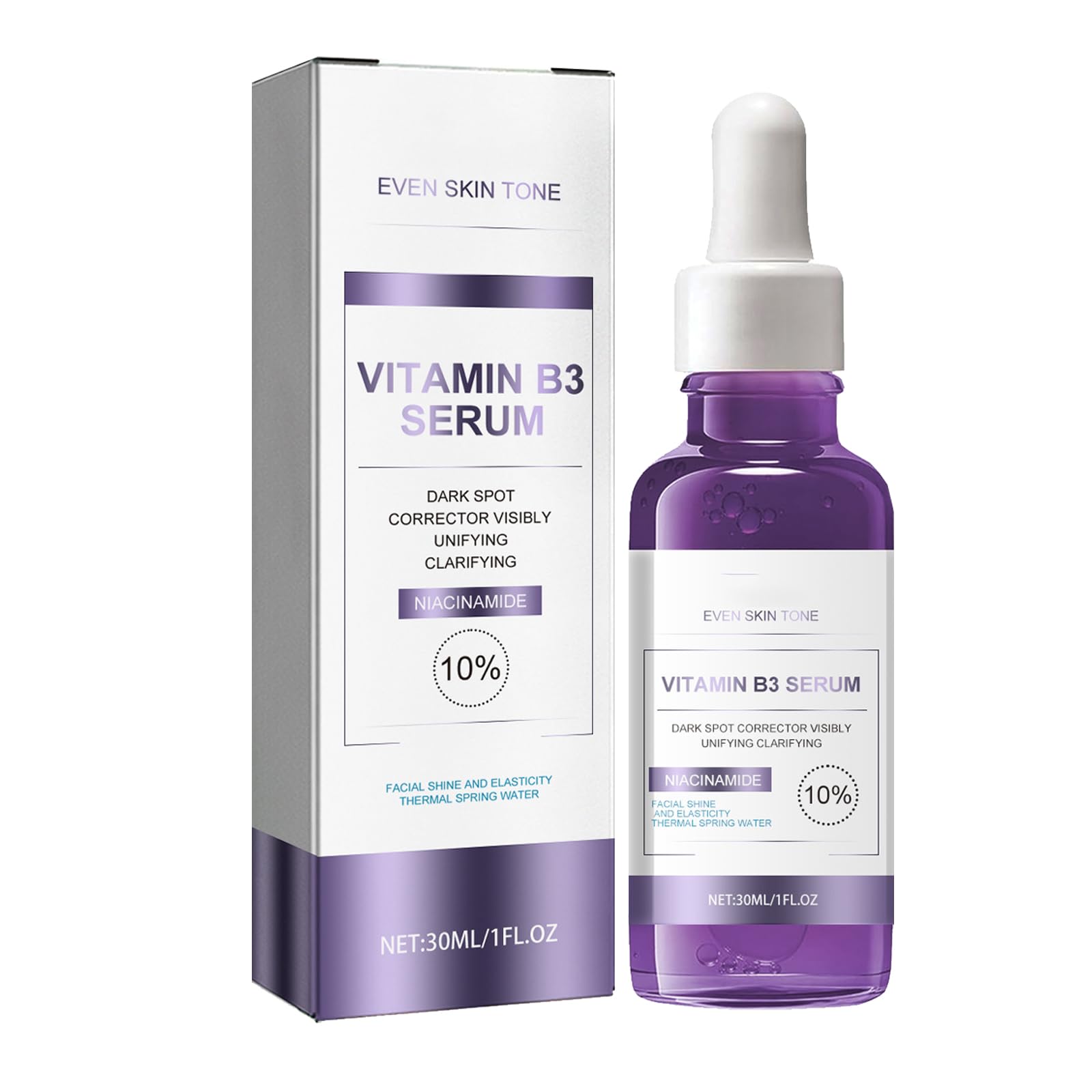 Suitable for all skin types. This vitamin B3 serum is suitable for all skin types, including dehydrated or dry skin, dark skin, oily skin, and skin with signs of aging wrinkles. This serum helps improve skin tone, leaving skin smoother, pores refined, and blackheads soothed and reduced. Pigmentation spots caused by blemishes are prevented. The combination of niacinamide serum with vitamin B3 provides a clearer and smoother complexion for women over the long term. It reduces wrinkles and restores the skin's natural firmness, leaving skin supple, light, and toned. It prevents premature skin aging and improves collagen and elastin production, resulting in softer, more youthful-looking skin.Convient à tous les types de peauLe sérum de vitamine B3 convient à toute peau, peau déshydratée ou sèche, peau noire, peau grasse et peau de rides vieillissantes. Ce sérum aide à améliorer le teint, et la peau devient plus lisse, les pores plus fins, les points noirs,sont soulagés et réduits. Les taches pigmentaires causées par les boutons sont évitées, La combinaison du sérum de niacinamide avec la vitamine B3 permet un teint plus propre et plus lisse pour les femmes à long terme. Il réduit les rides et redonne à la peau sa fermeté naturelle. pour une peau souple, légère et compacte. Il empêche le vieillissement rapide de la peau et améliore la production de collagène et d'élastine, pour une peau plus douce, et rend votre peau plus jeune.Sérum Visage B3 Anti-Taches,B3 Correcteur De Taches Sombres Sérum,Sérums Visage Anti-Rides,Tous Types De Peaux