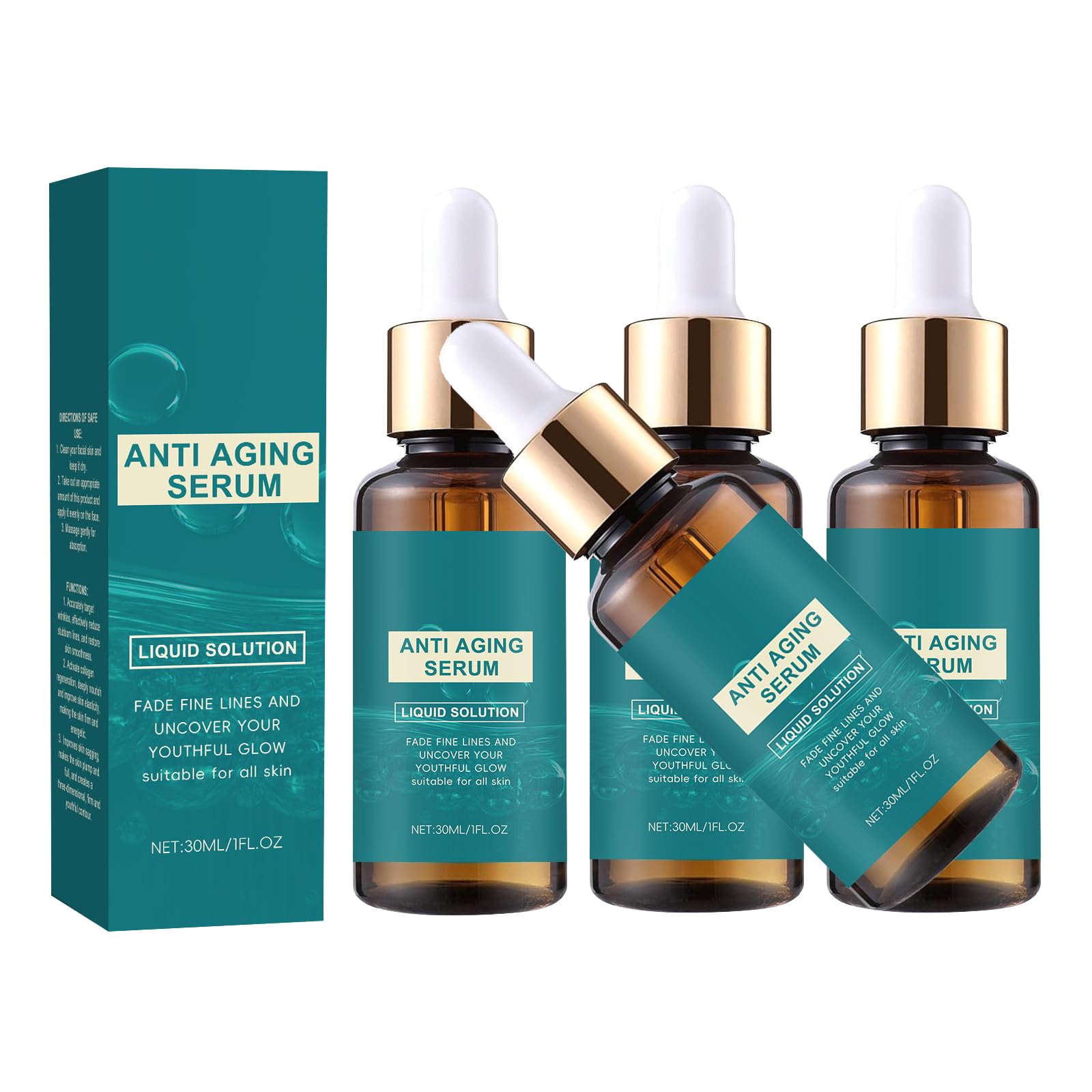 : Reveal younger-looking skin with this powerful anti-aging hydrating face serum for women, a concentrated liquid solution designed to combat the visible signs of aging. Rich in vitamin C, hyaluronic acid, and peptides, this serum deeply hydrates while reducing the appearance of wrinkles, fine lines, and dullness. It stimulates collagen production, firms loose skin, and brightens the complexion for a luminous, youthful glow. Whether you're targeting dark spots, uneven skin tone, or loss of firmness, this anti-aging essence deeply nourishes and delivers transformative results. Suitable for all skin types, this 30ml serum is your daily dose of beauty: hydration, radiance, and visible skin renewal with every drop. Start your journey to smoother, plumper, and more radiant skin today. Safety Warning: Keep in a cool place and away from children