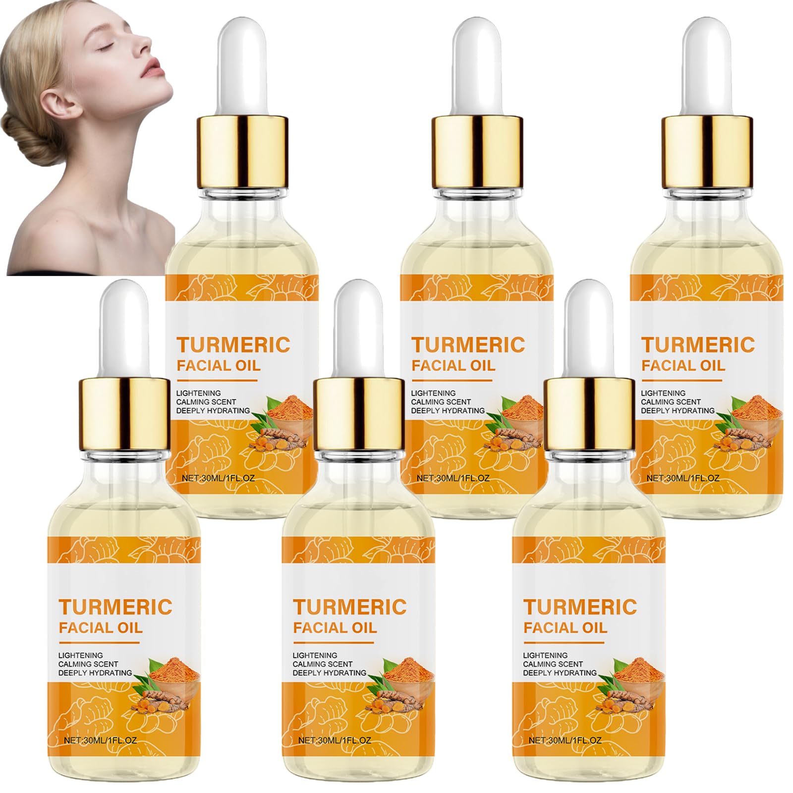 Sérum visage à l'huile de curcuma, sérum correcteur de taches au curcuma pour le visage et le corps, éclaircit le teint et améliore le teint terne et les ridules pour une peau brillante (6pcs)