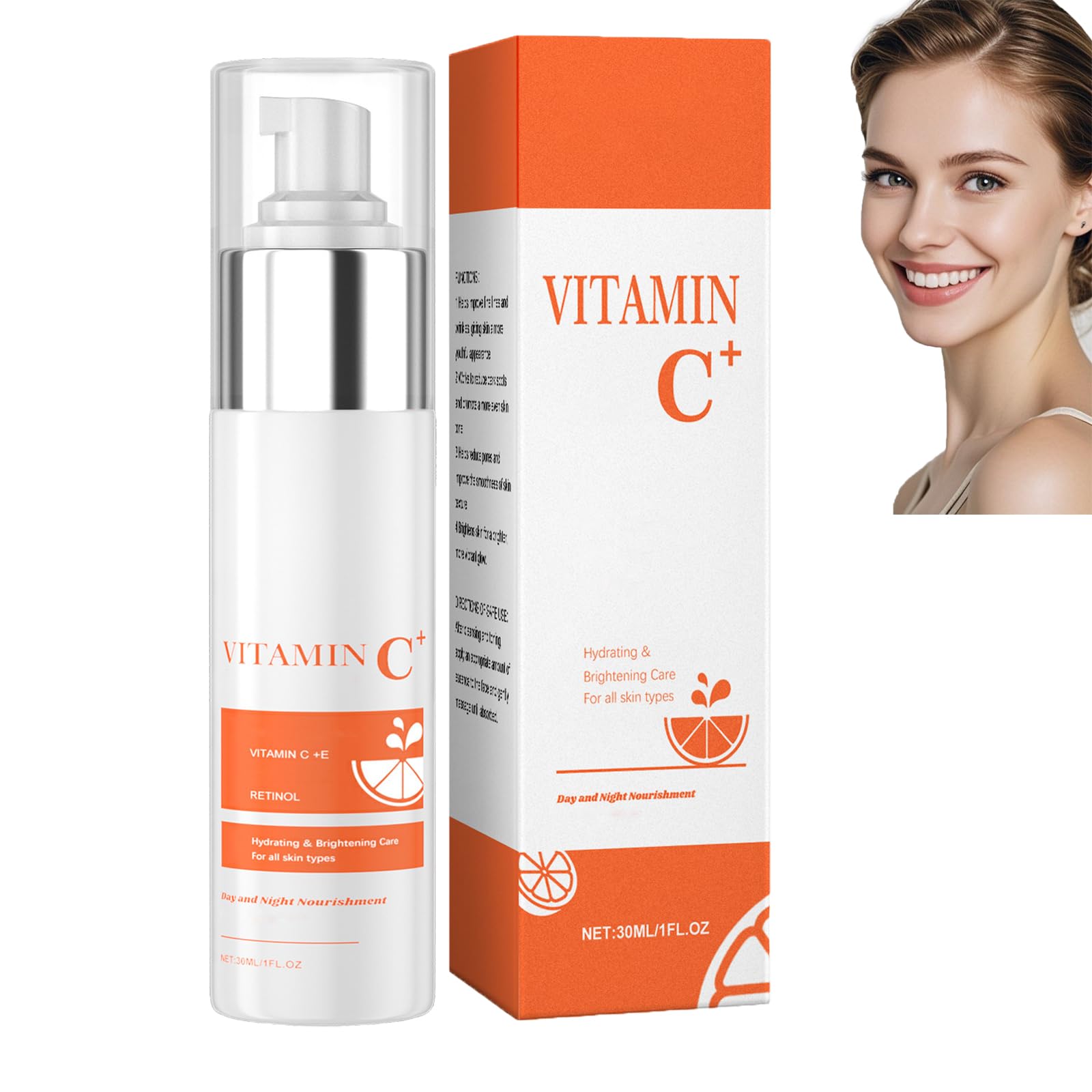 Sérum visage à la vitamine C, sérum anti-âge au rétinol et à la vitamine E pour une peau éclatante, réduit les rides et ridules, illumine la peau terne, hydrate et raffermit (1pcs)