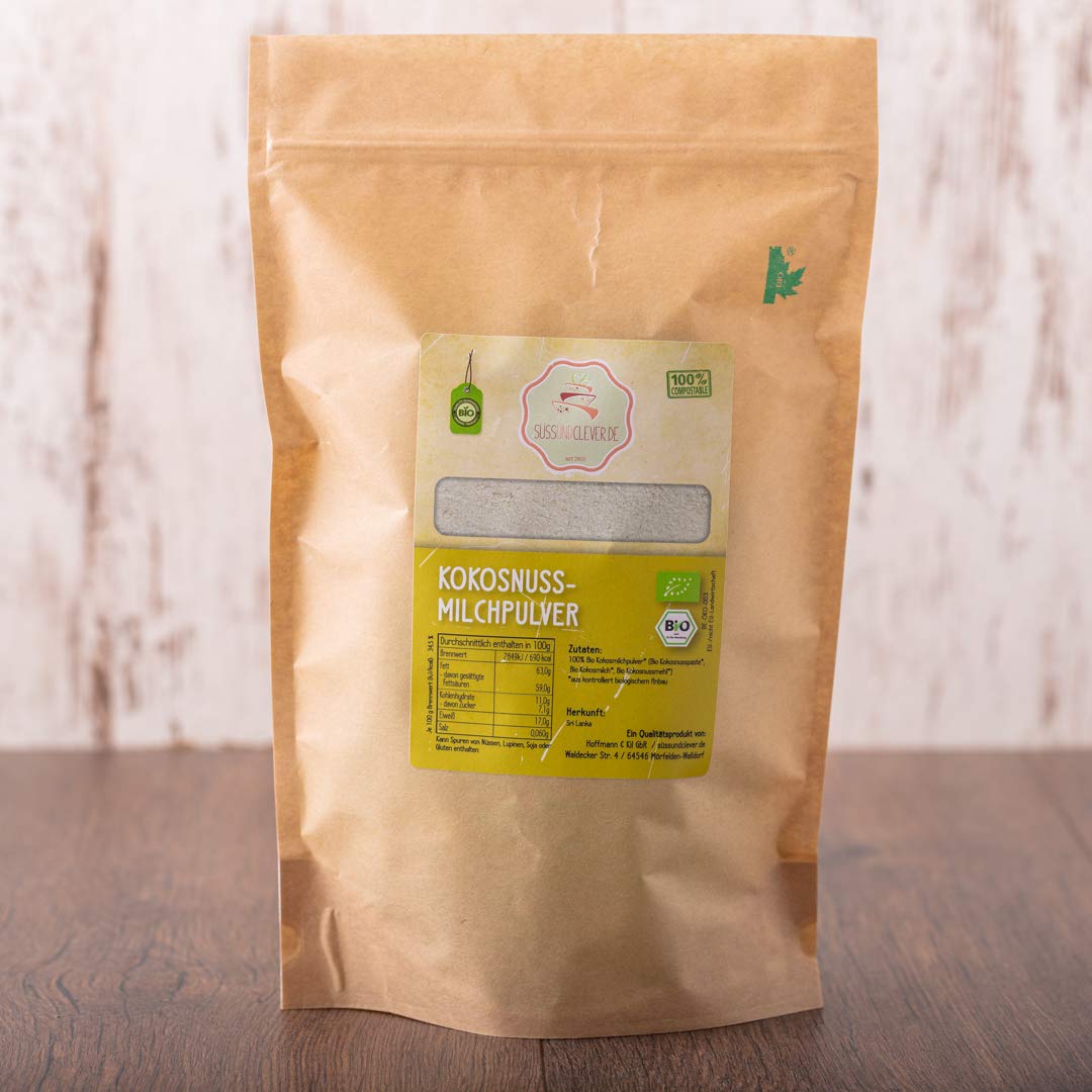 süssundclever.de® Bio Kokosmilchpulver | 500 g | ohne Zusatzstoffe & ohne Maltodextrin | 17% Protein | Premium Qualität | plastikfrei und ökologisch-nachhaltig abgepackt
