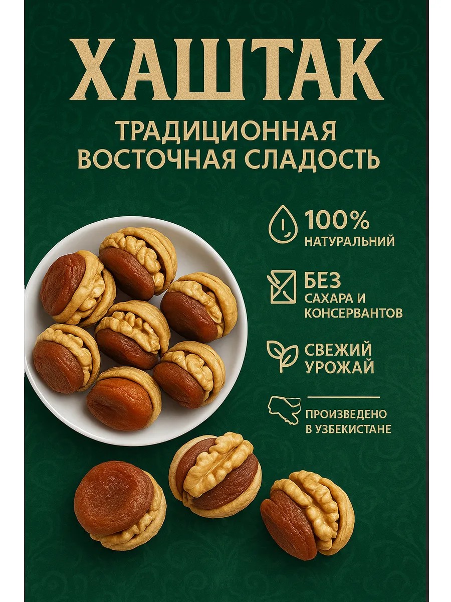 Хаштак — это не просто лакомство, а символ восточного гостеприимства, любви к натуральным продуктам и заботы о здоровье. Приготовленный вручную из отборной кураги и цельных половинок грецкого ореха, он сочетает в себе богатый вкус, натуральный состав и высокую пищевую ценность. Хаштак из кураги с грецким орехом отлично подходит как для повседневного перекуса, так и для праздничной подачи, заменяя вредные сладости полезной и сытной альтернативой.