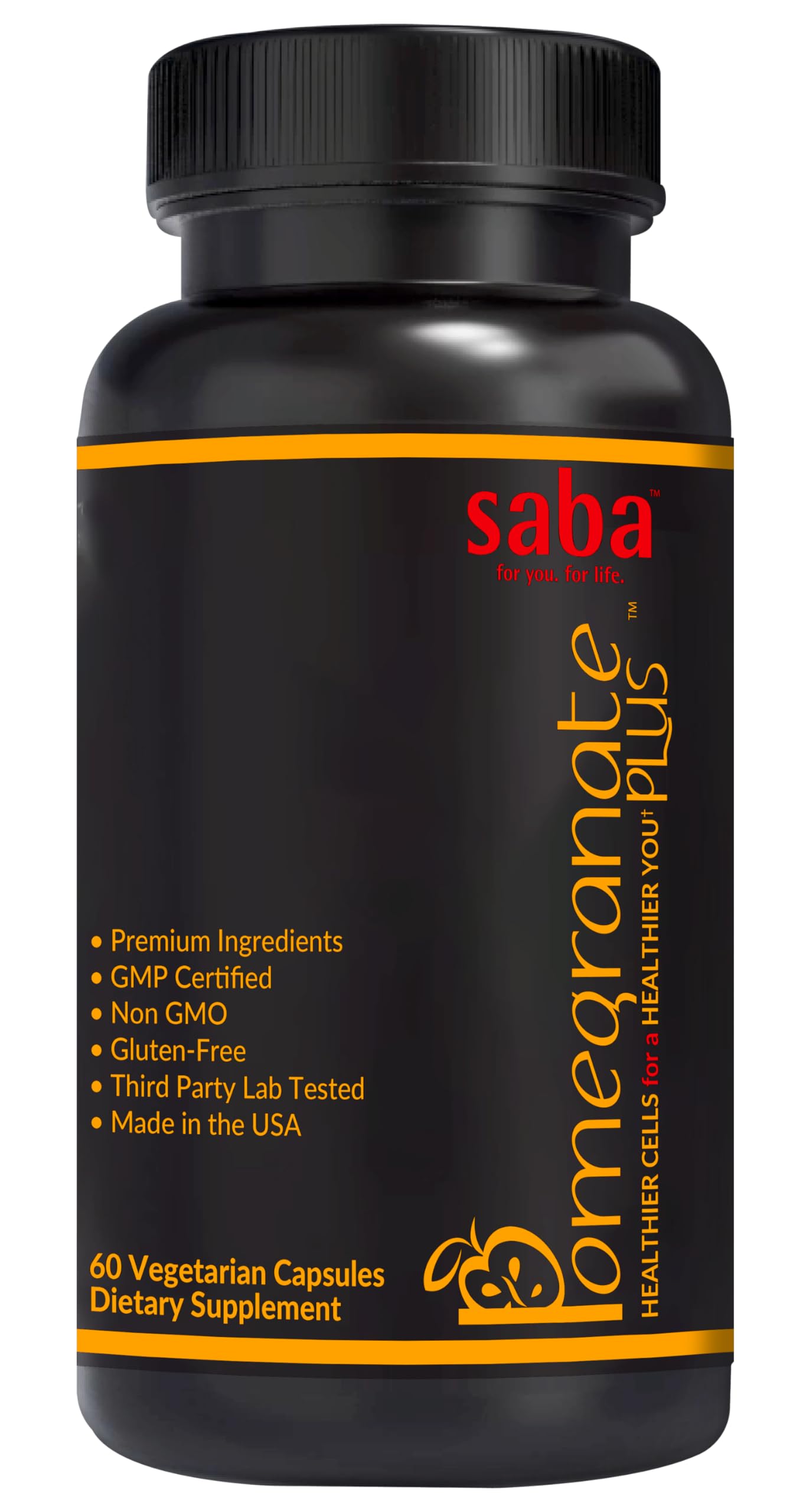 Saba Pomegranate Plus is sourced from some of the safest and most effective ingredients available. Saba Products are third-party lab-tested, Organic, Gluten-Free, and Non-GMO, manufactured in a cGMP and FDA-certified facility, and is always ISO third-party lab tested for purity and potency.