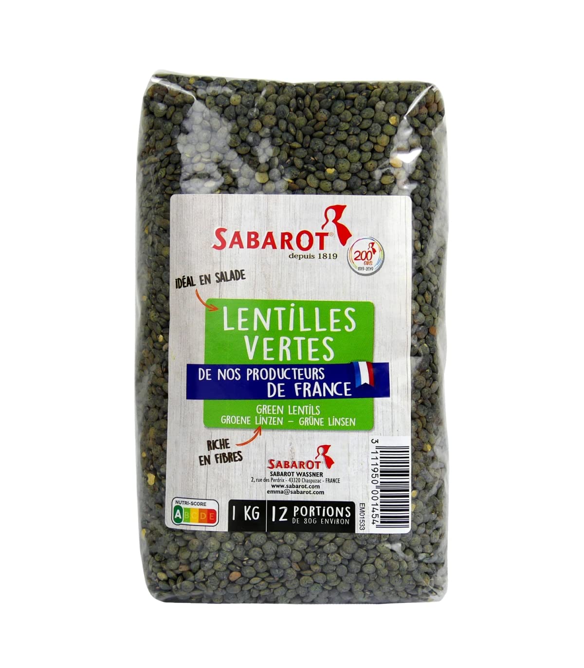 Lentilles vertes de France - Sachet 1Kg - Sabarot