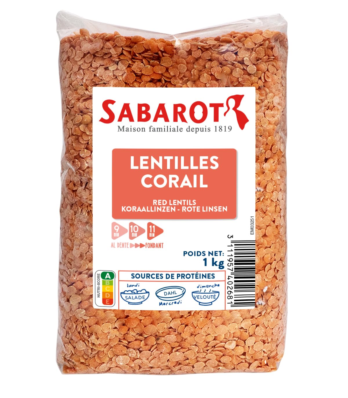 DESCRIPTION DU PRODUIT INGRÉDIENTS Lentilles corail. MODE D'EMPLOI Faire cuire les lentilles corail dans de l'eau bouillante pendant 9 minutes environ.