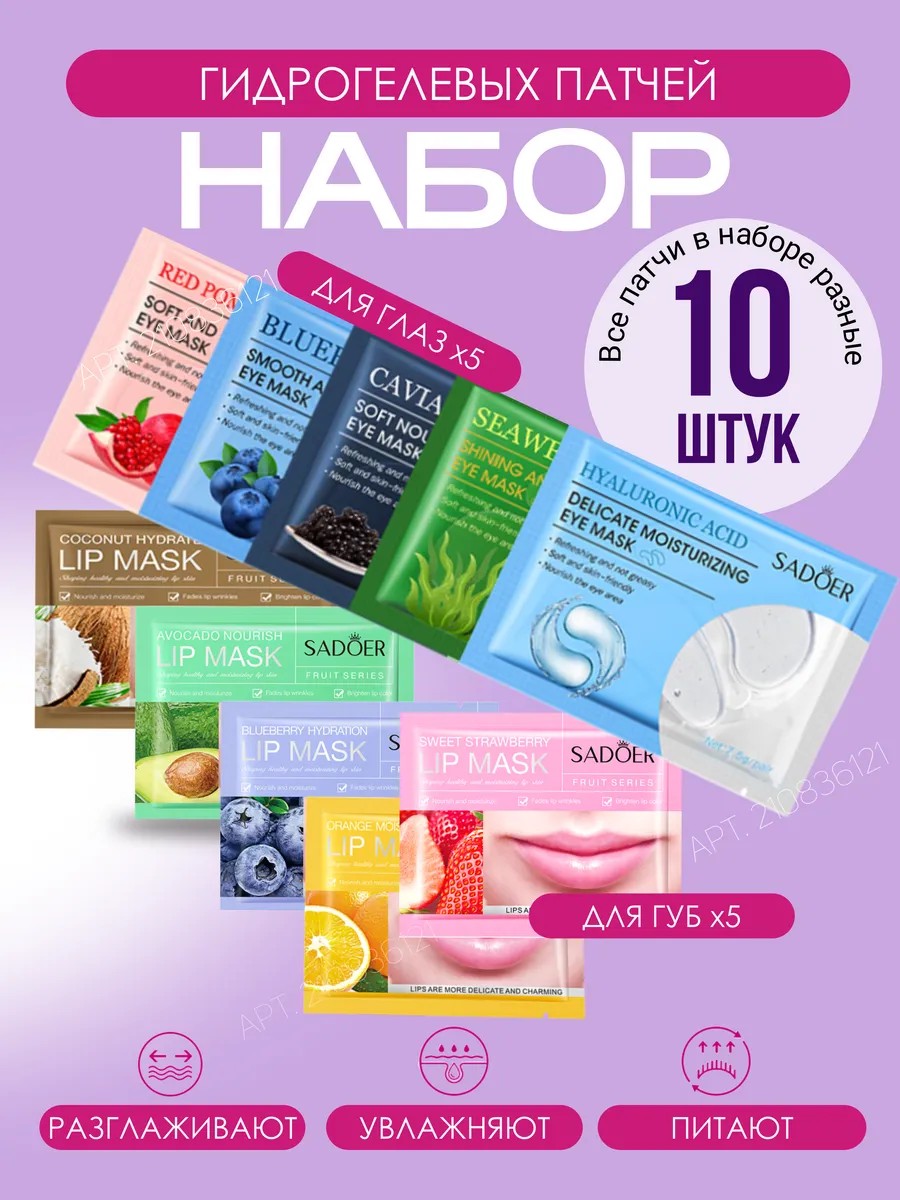 Sabbi Cosmetics Гидрогелевые патчи для губ и глаз 10шт